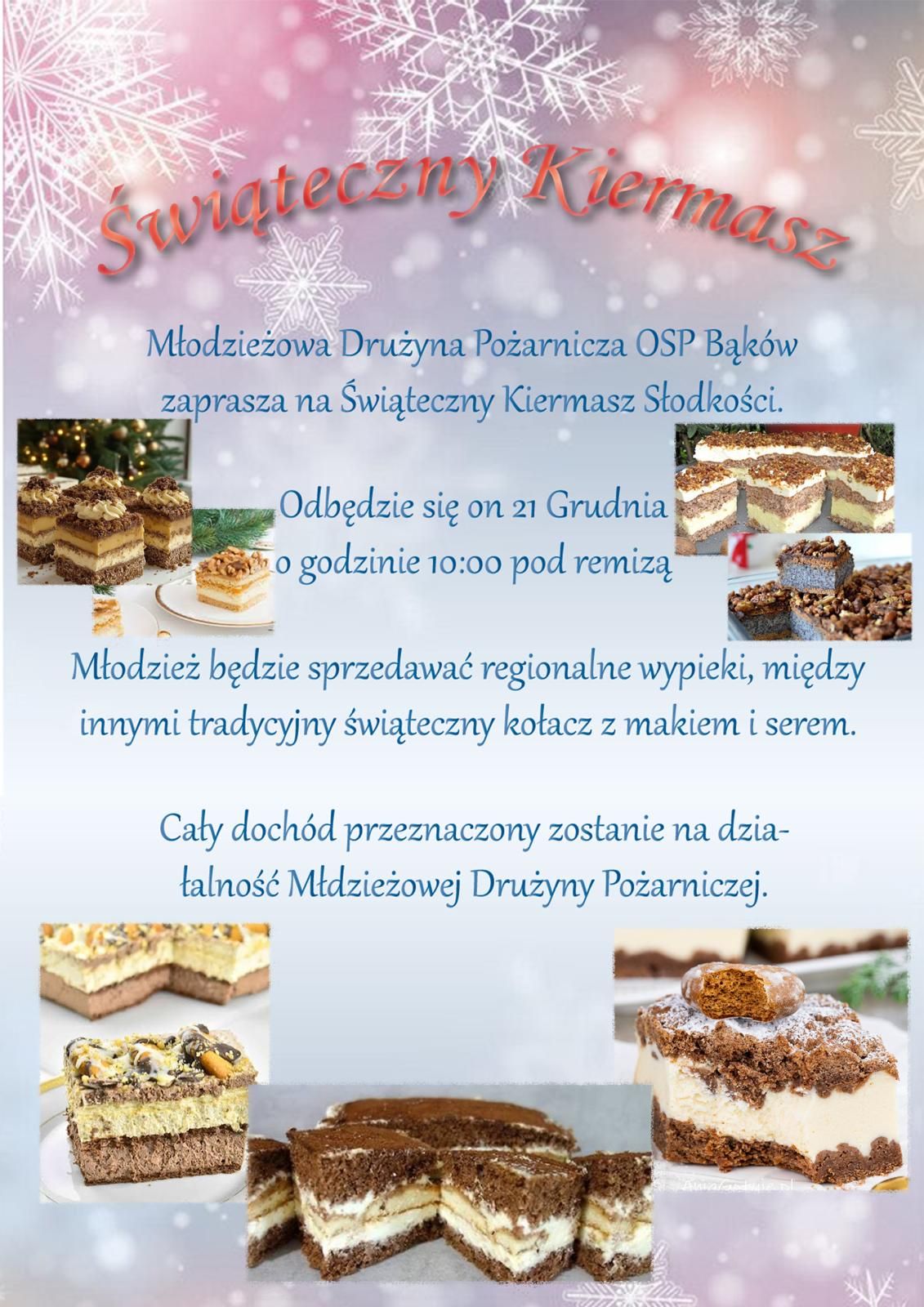 Młodzieżowa Drużyna Pożarnicza OSP Bąków zaprasza na Świateczny Kiermasz Słodkości
