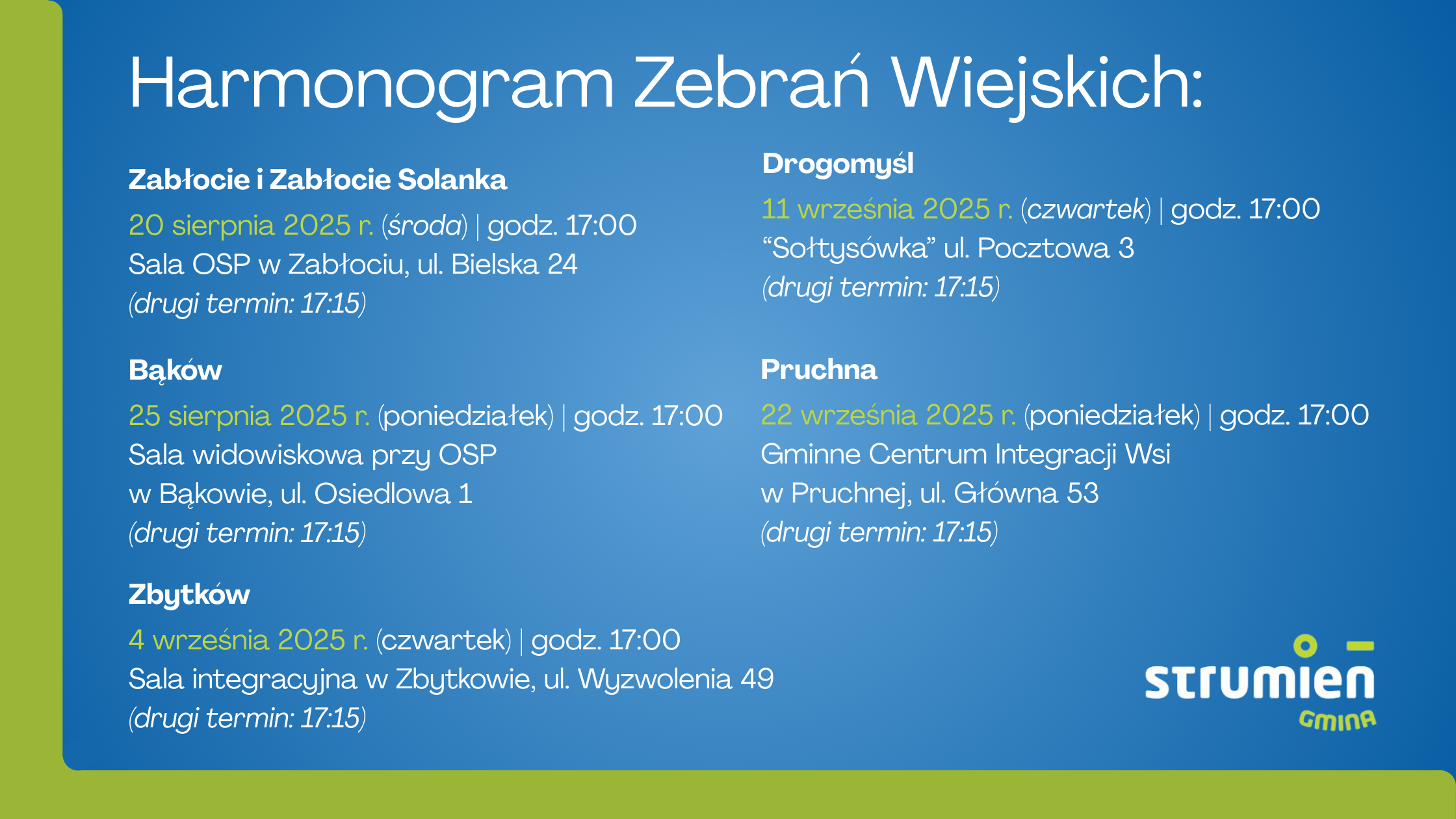 Zachęcamy wszystkich do udziału w zebraniach i współdecydowania o przyszłości swoich miejscowości.