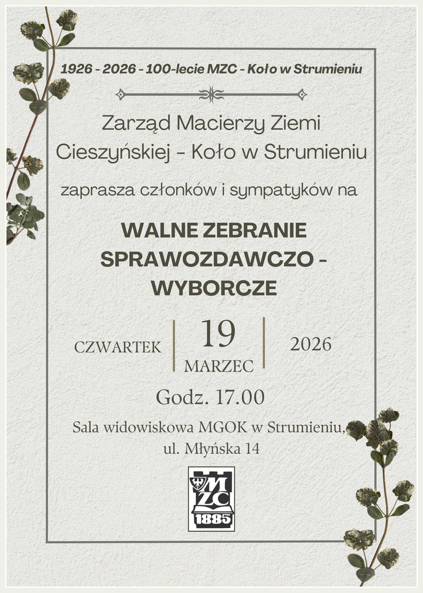 Zarząd Macierzy Ziemi Cieszyńskiej - Koło w Strumieniu serdecznie zaprasza na walne zebranie sprawozdawczo-wyborcze.
