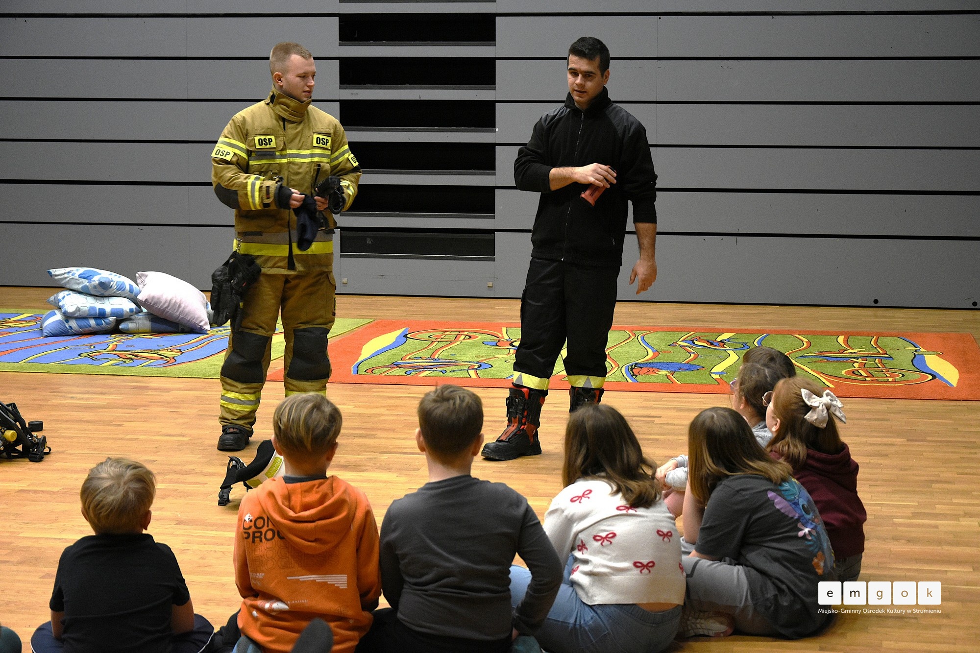Ogromnym zainteresowaniem cieszyło się spotkanie ze strażakami. Dzieci zobaczyły pełny strój bojowy z aparatem tlenowym, wysłuchały zasad bezpieczeństwa, a pod czujnym okiem druhów ćwiczyły resuscytację krążeniowo-oddechową na fantomie.