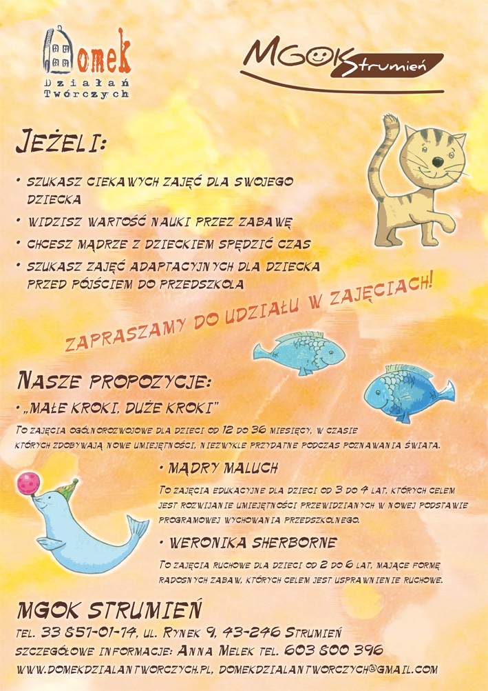 Szczegółowe informacje: Anna Melek tel. 603-800-396 oraz domekdzialantworczych.pl