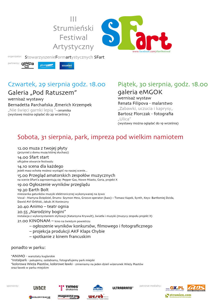 na scenie SFart’a zaprezentują się: Pepper Gas, Nowe Miasto, Coria, projekt X