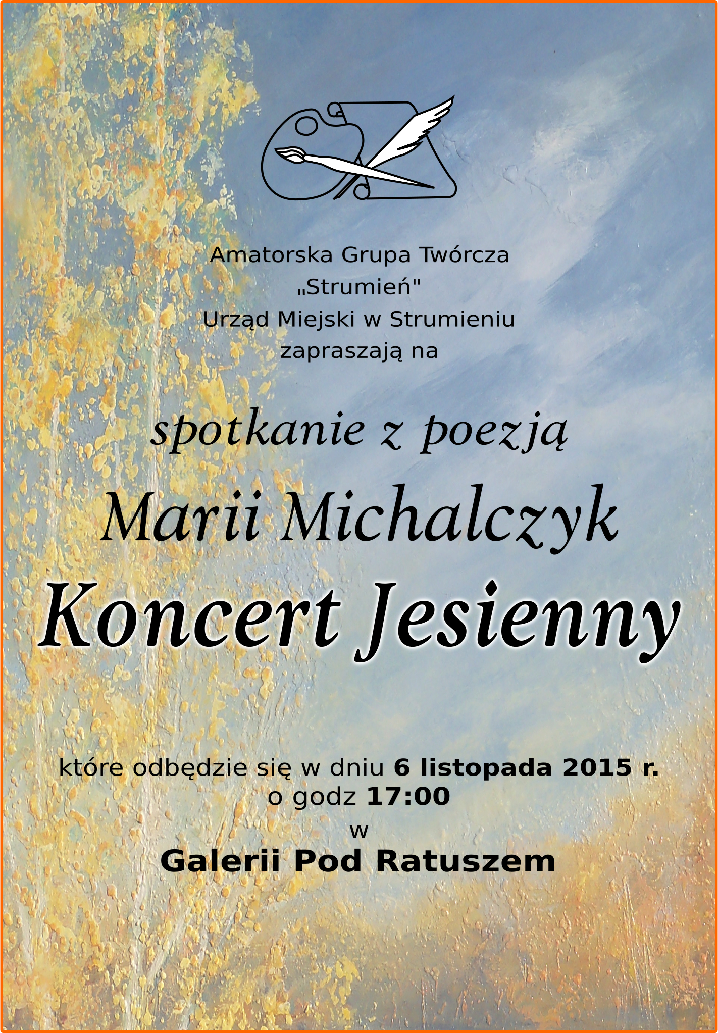 6 listopada 2015r. o godzinie 17.00 w Galerii Pod Ratuszem odbędzie się spotkanie z poezją Pani Marii Michalczyk.