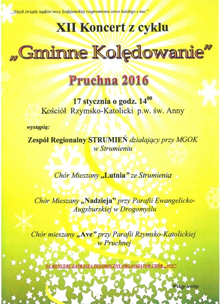 Zapraszamy na "Gminne Kolędowanie" Pruchna 2016.
