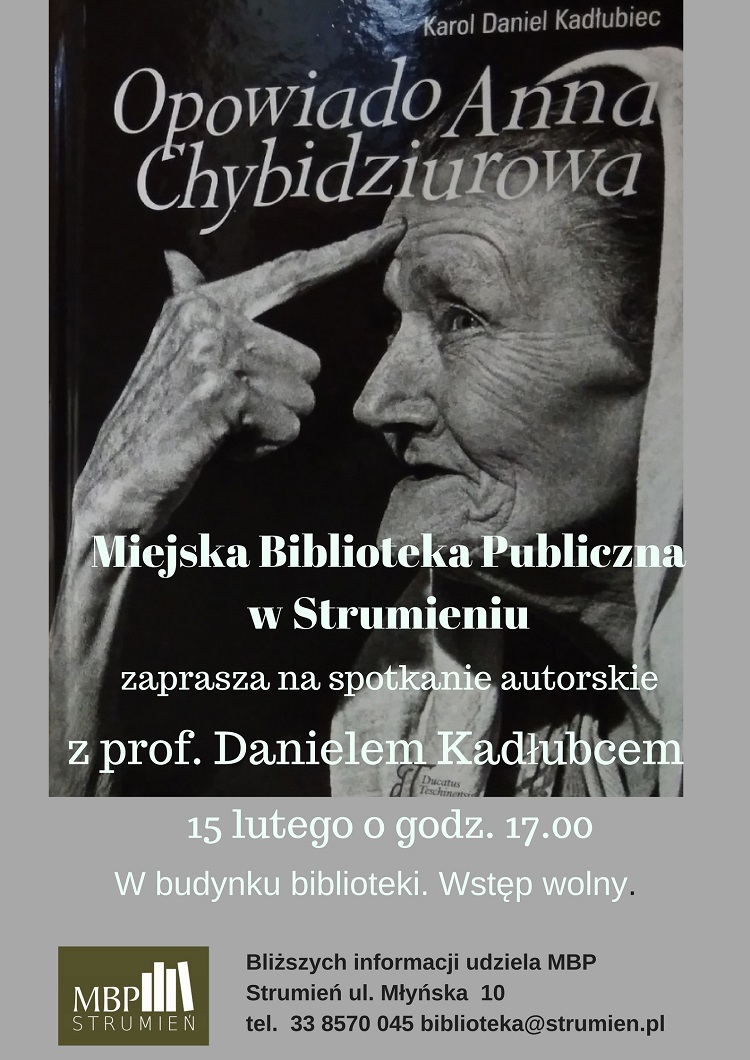 Miejska Biblioteka Publiczna w Strumieniu zaprasza na spotkanie autorskie z prof. Danielem Kadłubcem, które odbędzie się 15 lutego o godzinie 17.00 w budynku biblioteki. Wstęp wolny.