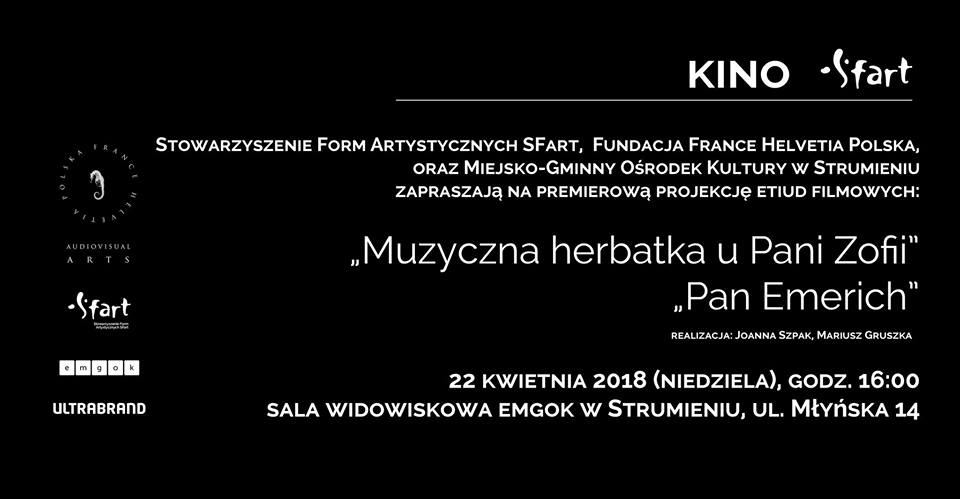 Stowarzyszenie Form Artystycznych SFart, Fundacja France Helvetia Polska, oraz Miejsko-Gminny Ośrodek Kultury w Strumieniu zapraszają na premierową projekcję etiud filmowych: