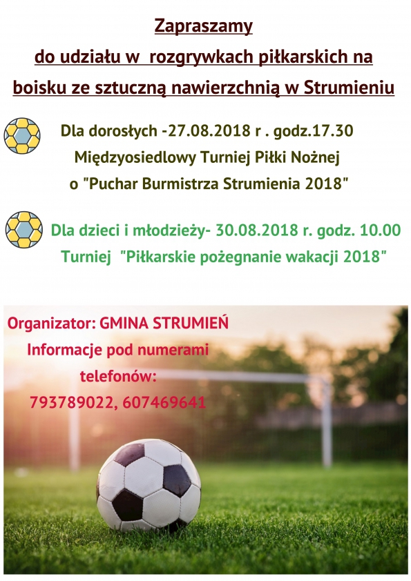 Dla dorosłych Międzyosiedlowy Turniej Piłki Nożnej o "Puchar Burmistrz Strumienia 2018"