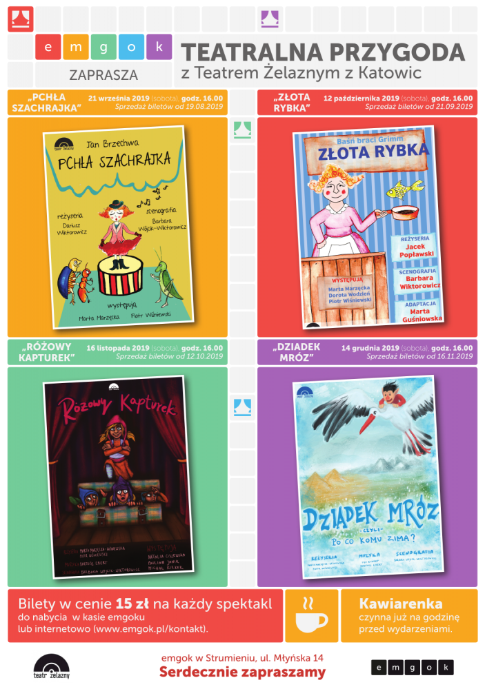 Spektakl odbędzie się 14 grudnia 2019 r. o godz. 16:00 w Miejsko - Gminnym Ośrodku Kultury w Strumieniu.