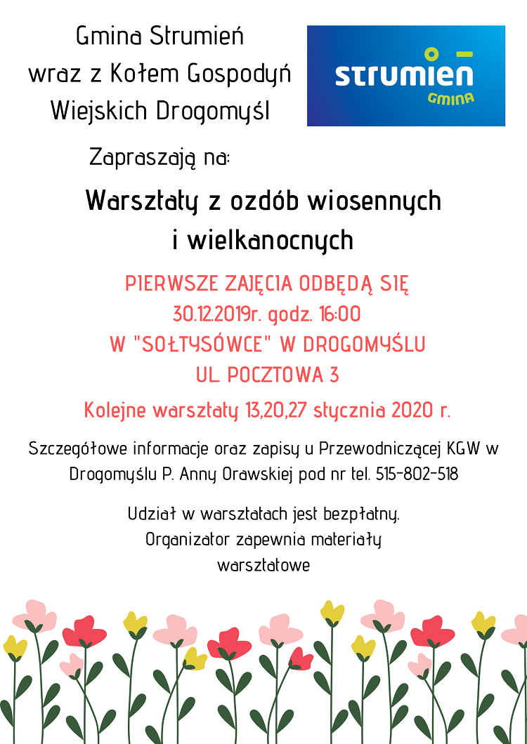 Szczegółowe informacje oraz zapisy u Przewodniczącej KGW w Drogomyślu P. Anny Orawskiej pod nr tel. 515-802-518.