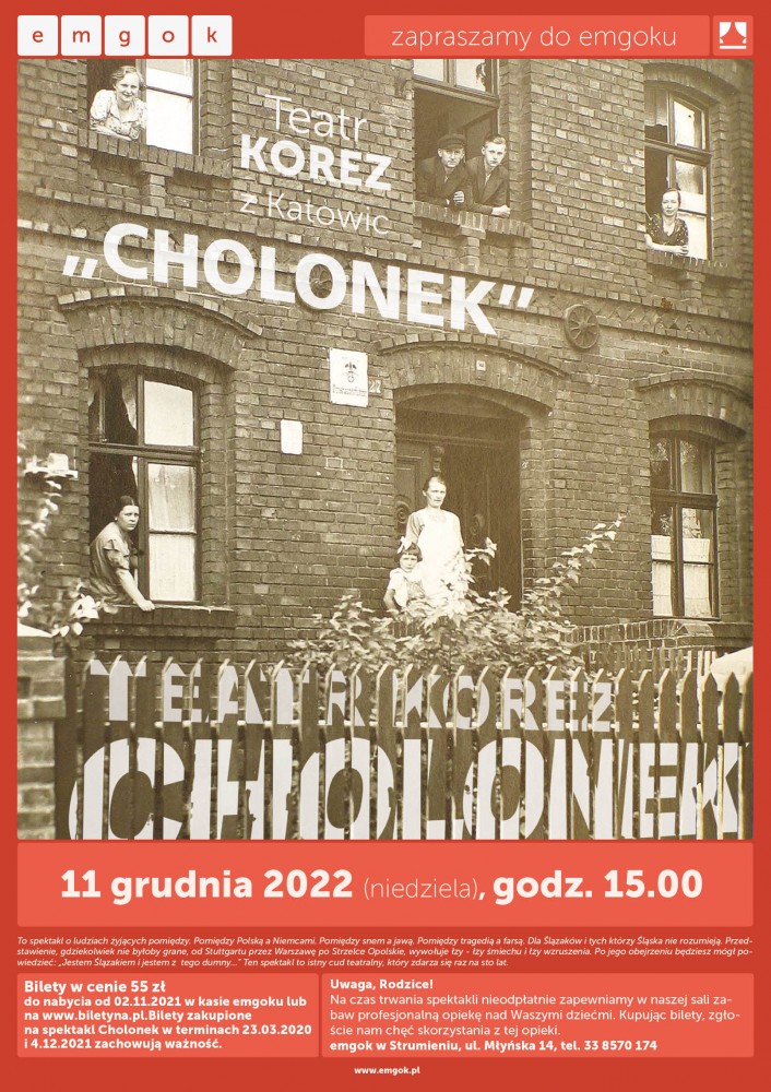 Miejsko-Gminny Ośrodek Kultury w Strumieniu i Teatr Korez zapraszają na spektakl „Cholonek”!