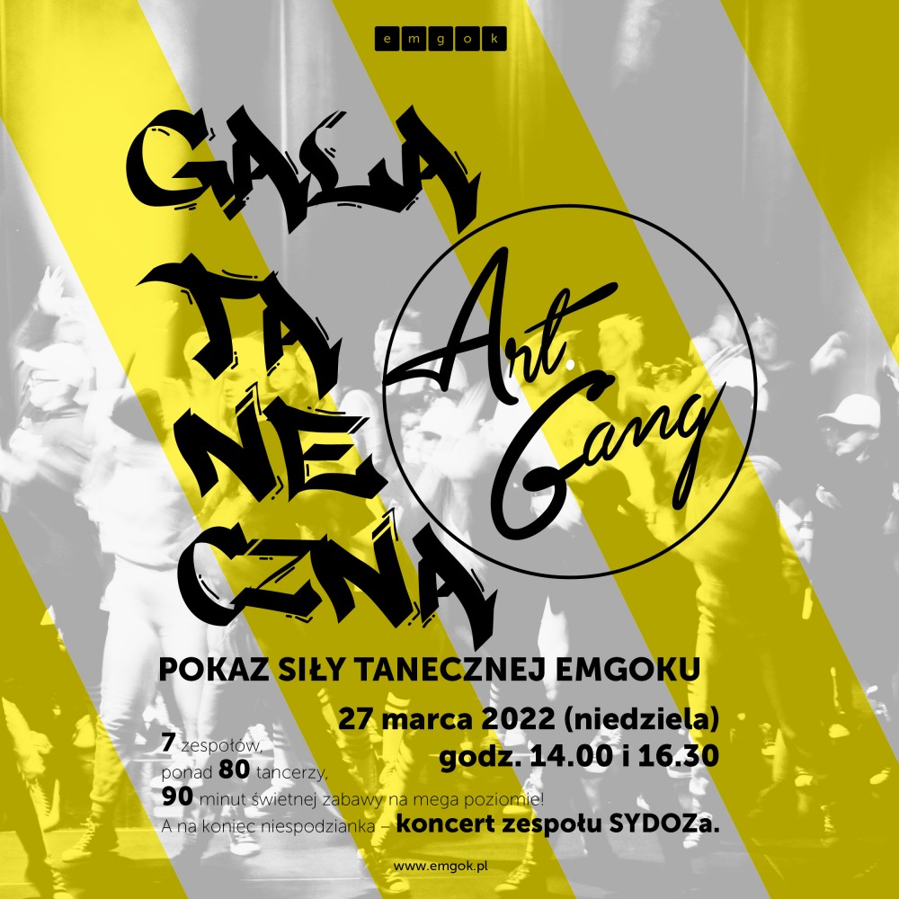 Miejsko-Gminny Ośrodek Kultury w Strumieniu zaprasza na Galę Taneczną ArtGang! Gala odbędzie się w niedzielę 27 marca. Spotkamy się dwukrotnie o godzinie 14:00 i 16:30. Bilety w cenie 15 zł są dostępne stacjonarnie w biurze emgok przy ulicy Młyńskiej 14 i online w serwisie biletyna.pl. Podczas 90-minutowego tanecznego show zaprezentuje się 7 zespołów, czyli łącznie ponad 80 tancerzy! A na koniec niespodzianka – wystąpi dla nas raper SYDOZ.