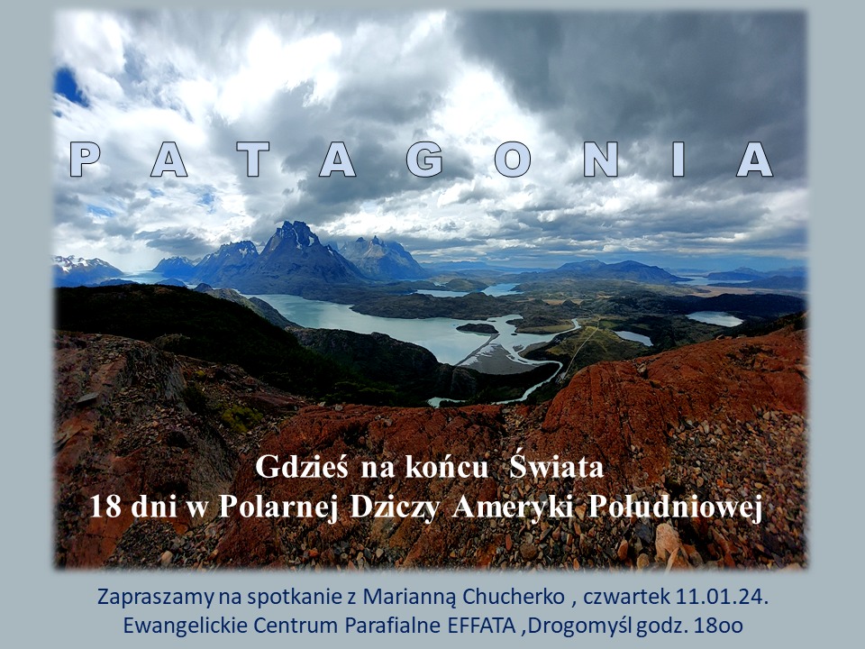 Parafia Ewangelicko - Augsburska w Drogomyślu zaprasza na spotkanie z Marianną Chucherko "Patagonia - gdzieś na końcu świata - 18 dni w polarnej dziczy Ameryki Południowej".