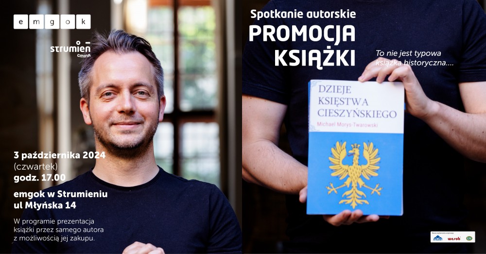 Miejsko-Gminny Ośrodek Kultury w Strumieniu zaprasza na spotkanie autorskie z Michaelem Morysem-Twarowskim, które organizowane jest, w związku z promocją książki „Dzieje Księstwa Cieszyńskiego”. Wydarzenie odbędzie się w czwartek 3 października 2024 w strumieńskim emgoku, przy ul. Młyńskiej 14. W programie prezentacja książki przez samego autora z możliwością jej zakupu.