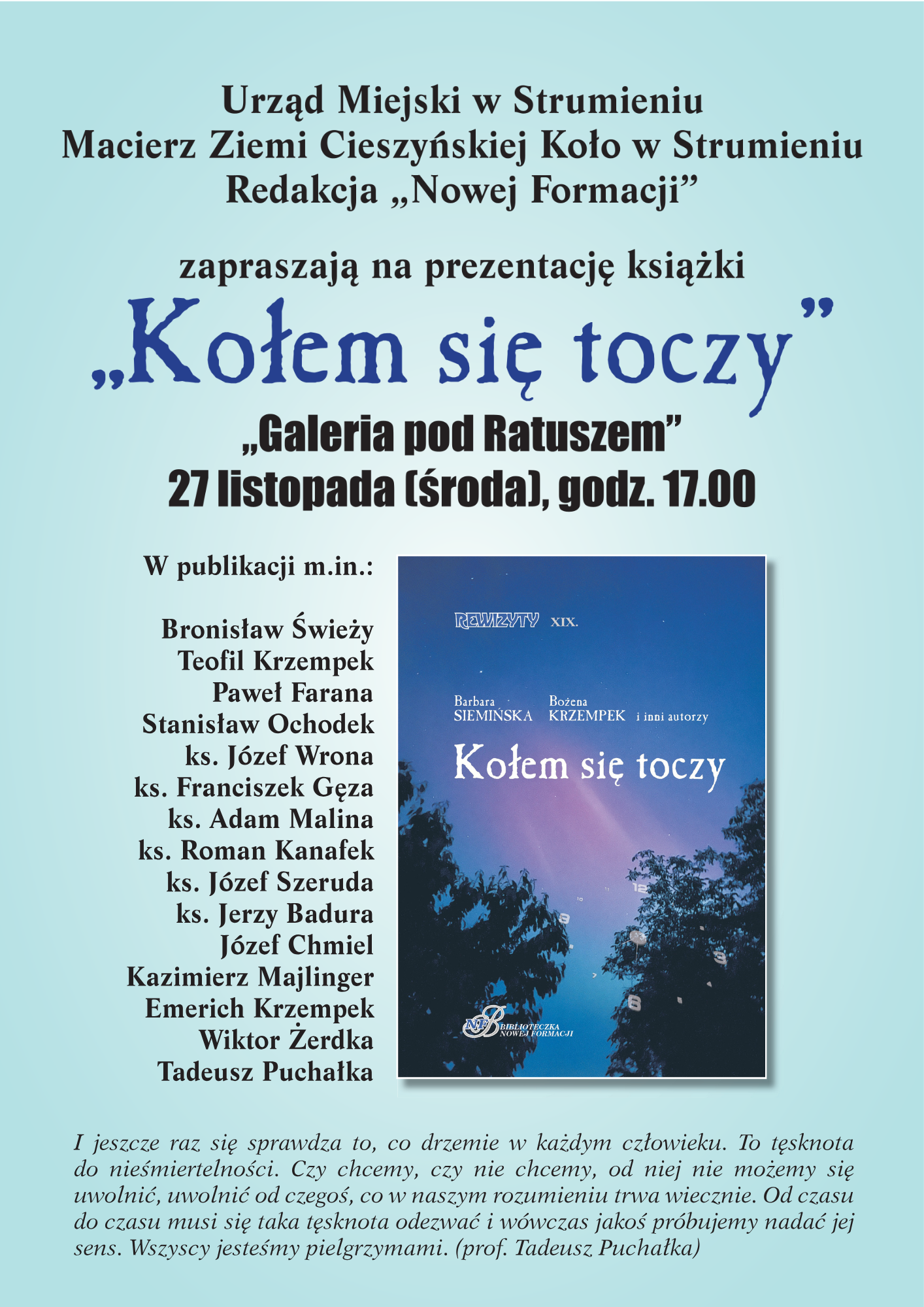 Urząd Miejski w Strumieniu, Macierz Ziemi Cieszyńskiej – Koło w Strumieniu oraz Redakcja Nowa Formacja serdecznie zapraszają na prezentację książki pt. „Kołem się toczy”.
