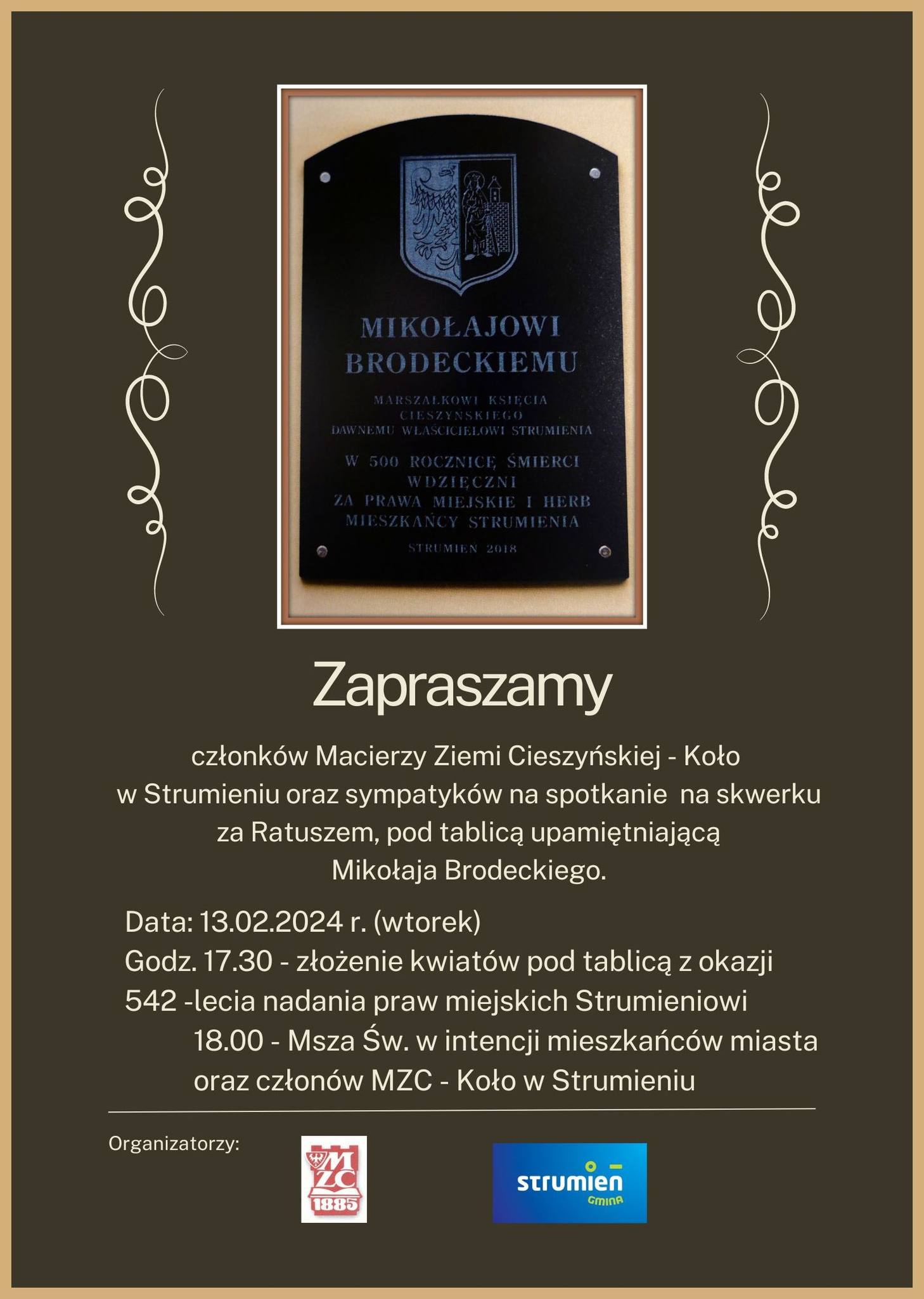 Godz. 17.30 – złożenie kwiatów pod tablicą z okazji 542-lecia nadania praw miejskich Strumieniowi