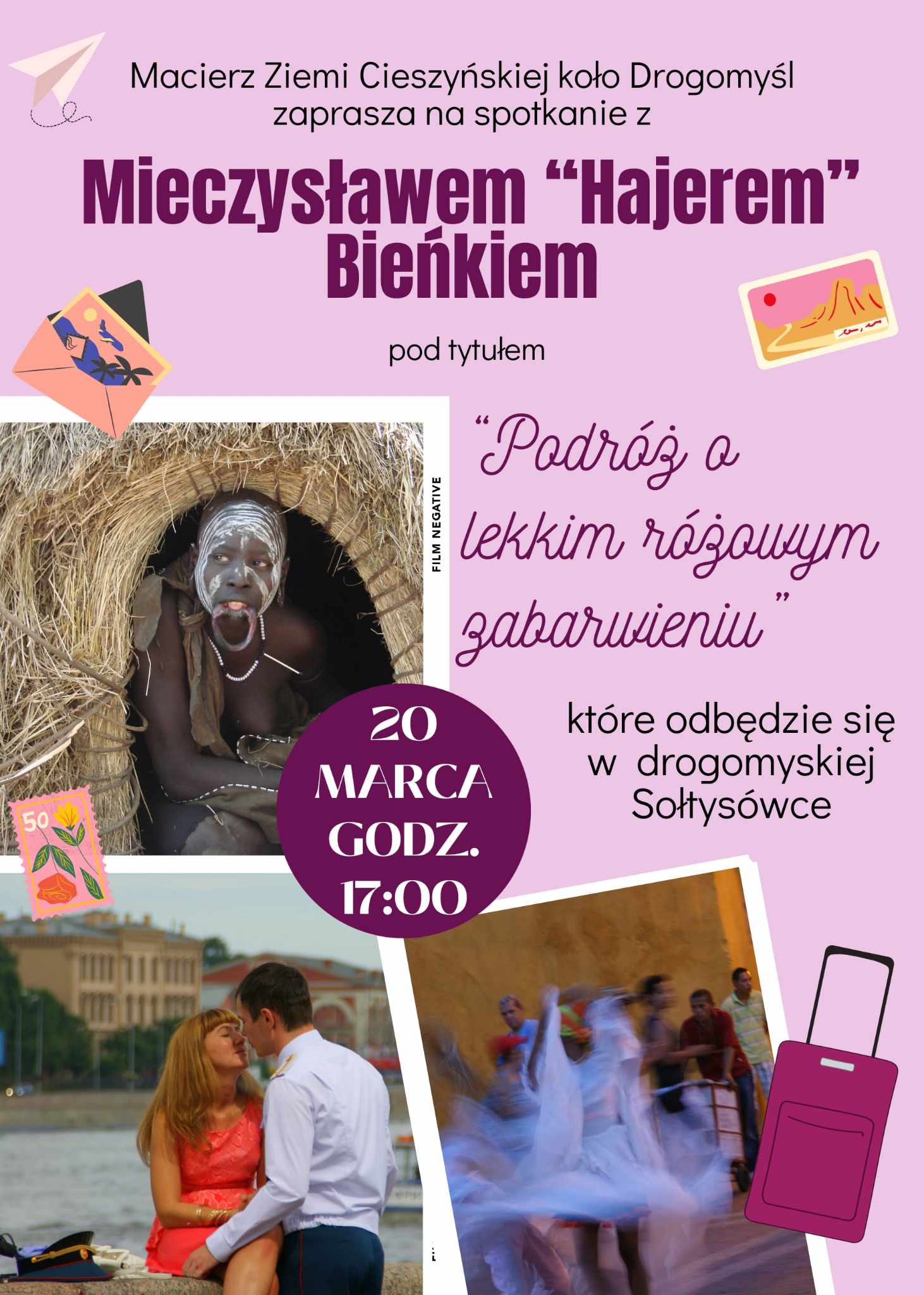 Macierz Ziemi Cieszyńskiej koło Drogomyśl zaprasza na spotkanie z Mieczysławem "Hajerem" Bieńkiem pod tytułem "Podróż o lekkim różowym zabarwieniu" które odbędzie się w drogomyskiej Sołtysówce