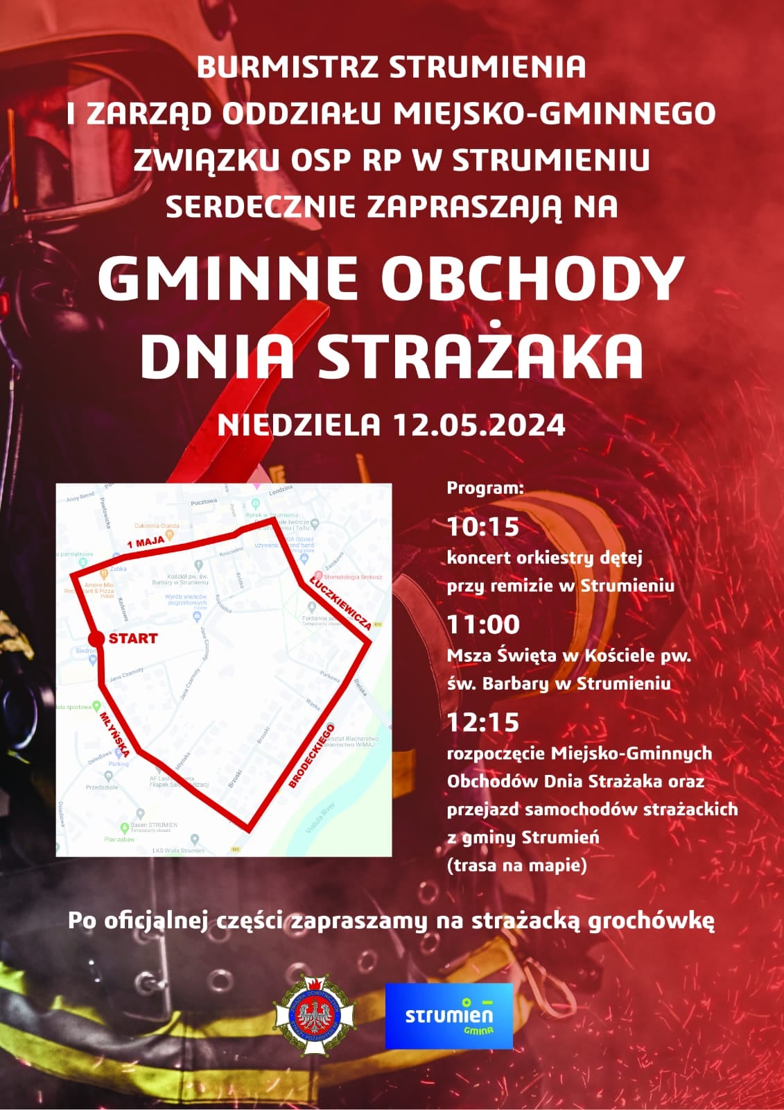 Burmistrz Strumienia i Zarząd Oddziału Miejsko-Gminnego Związku OSP RP w Strumieniu serdecznie zapraszają na Gminne Obchody Dnia Strażaka