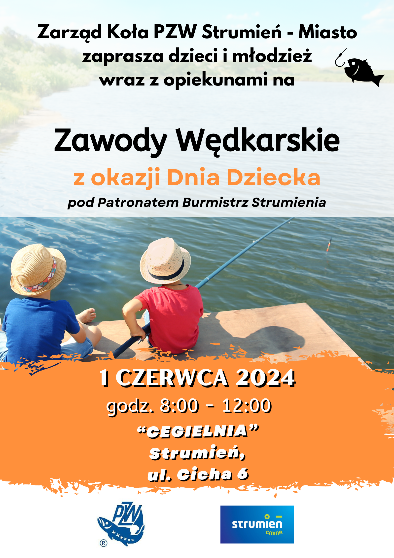 Zarząd Koła PZW Strumień - Miasto zaprasza dzieci i młodzież wraz z opiekunami ze szkół gminy Strumień na zawody wędkarskie z okazji Dnia Dziecka pod Patronatem Burmistrz Strumienia