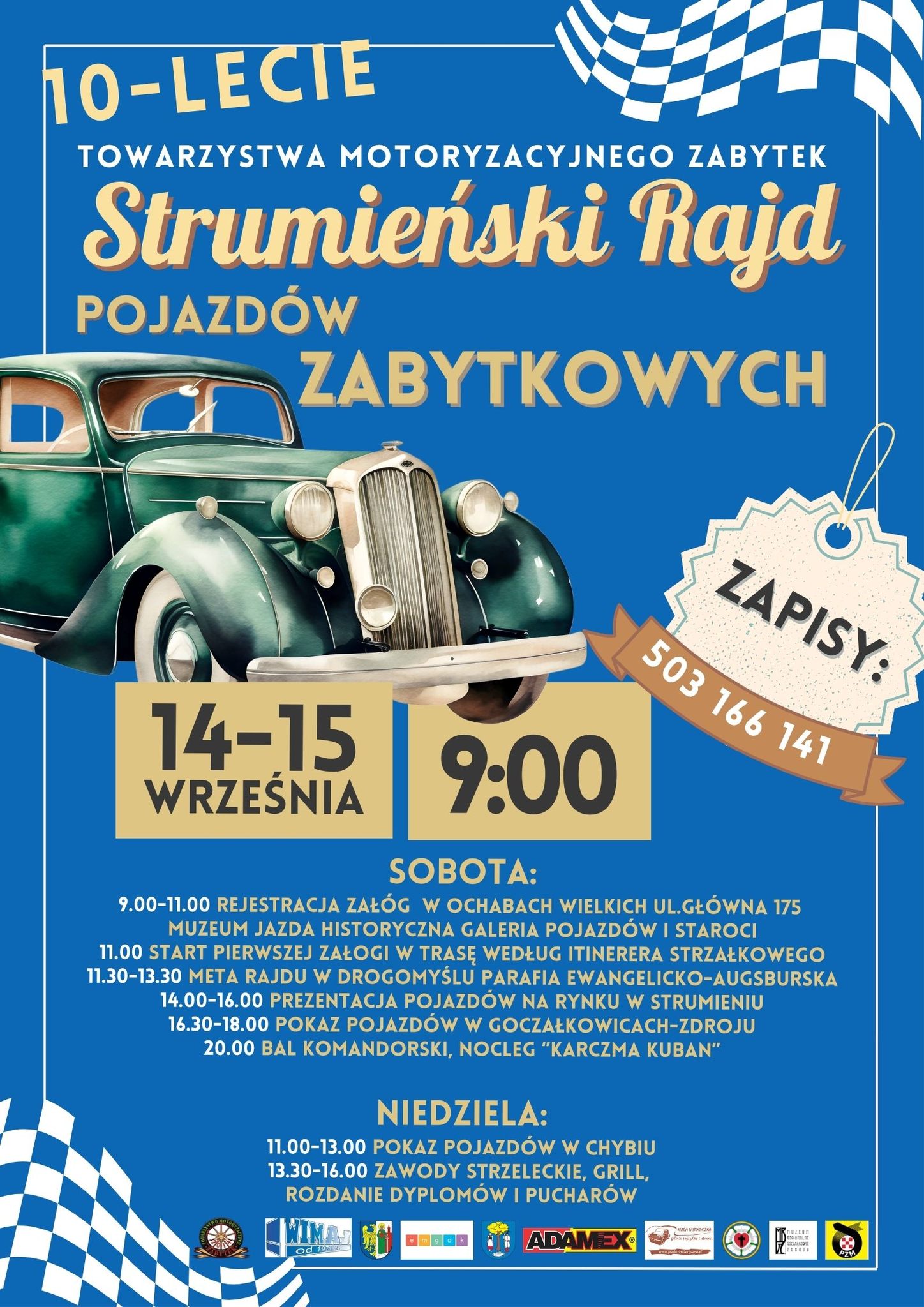 9:00 – 11:00 Rejestracja załóg w Ochabach Wielkich ul. Główna 175 Muzeum Jazda Historyczna Galeria Pojazdów i Staroci
