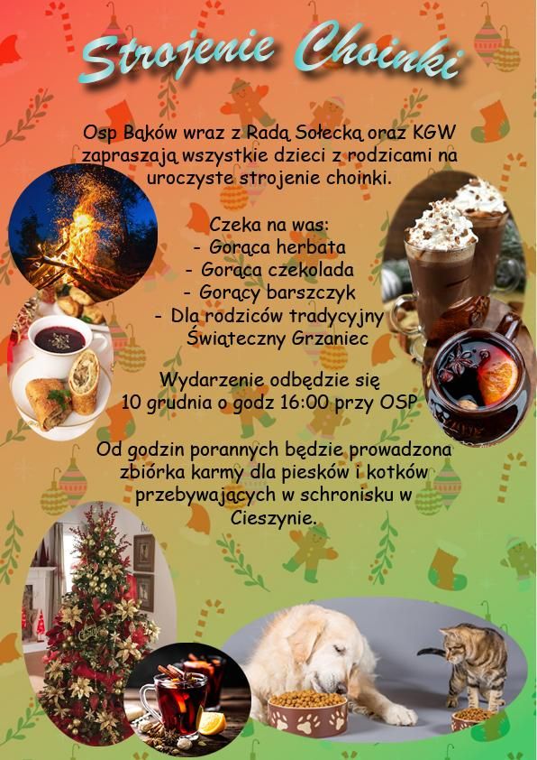 OSP Bąków wraz z Radą Sołecką oraz KGW zapraszają wszystkie dzieci z rodzicami na uroczyste strojenie choinki