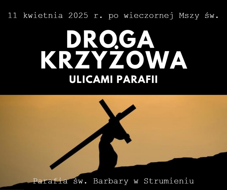 Rozpocznie się ona wieczorną Mszą św. w Sanktuarium św. Barbary w Strumieniu. Przejdzie ulicami: Kościelną, Jana Czarnoty, Młyńską, Osiedlową, Polną, Towarową, Powstańców Śląskich, Anny Bern, Pawłowicką i 1 Maja. Zabierzmy ze sobą świece.