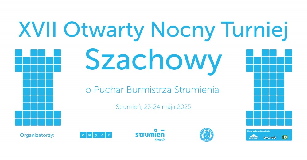 Ludowy Klub Sportowy „Wisła” w Strumieniu i Miejsko-Gminny Ośrodek Kultury w Strumieniu zapraszają do udziału w XVII Otwartym Nocnym Turnieju Szachowym o Puchar Burmistrza Strumienia! Tegoroczna edycja Turnieju zostanie rozegrana w Miejsko-Gminnym Ośrodku Kultury w Strumieniu (ul. Młyńska 14), w nocy z 23 na 24 maja . Początek Turnieju zaplanowano na piątek 23 maja 2025 r. na godz. 20:00, a jego zakończenie na sobotę 24 maja na godz. 8:00. Kierownikiem Turnieju jest Jan Jałowiczor – przewodniczący Komisji Rewizyjnej LKS „Wisła” w Strumieniu, a patronat honorowy nad imprezą objęła Burmistrz Strumienia Anna Grygierek.