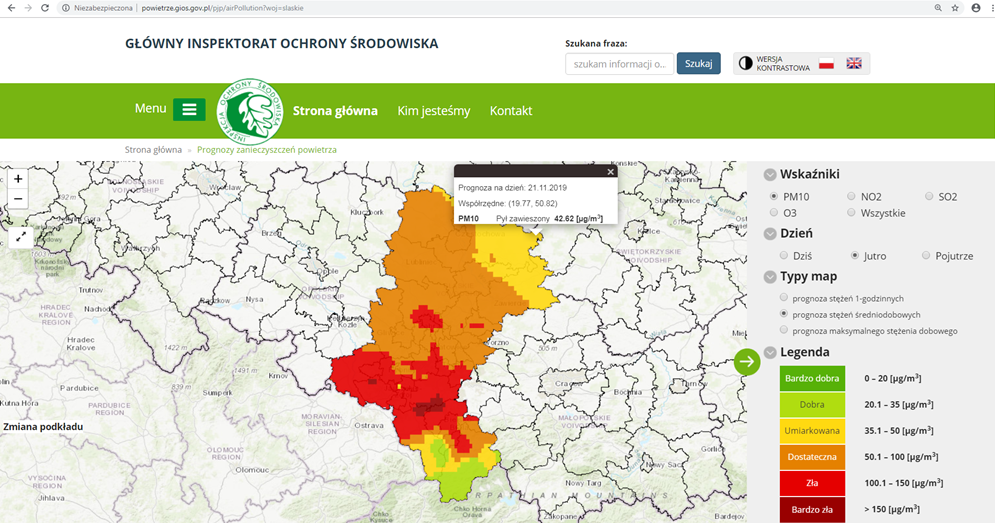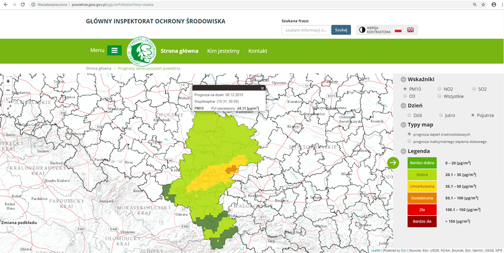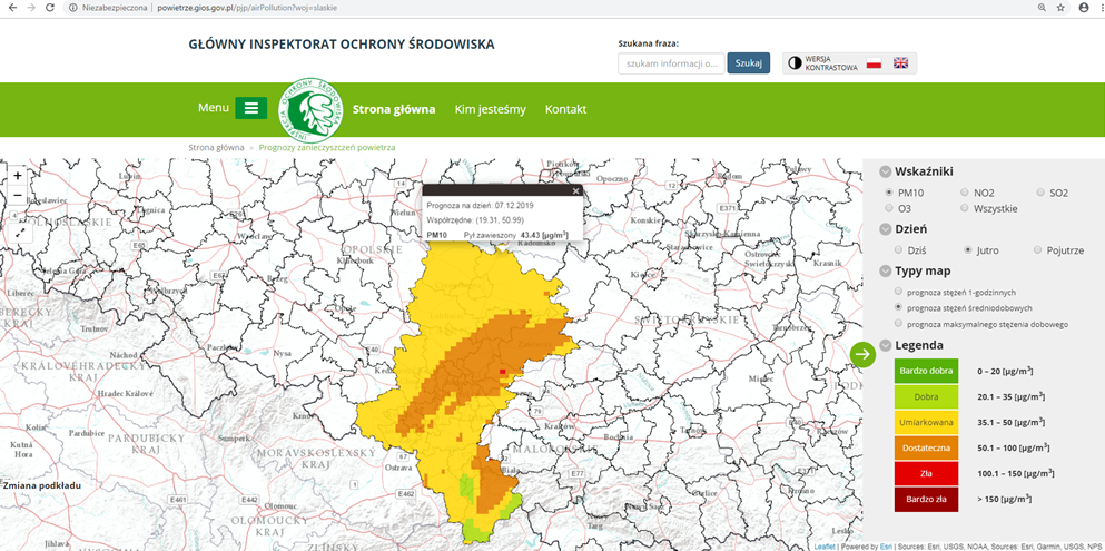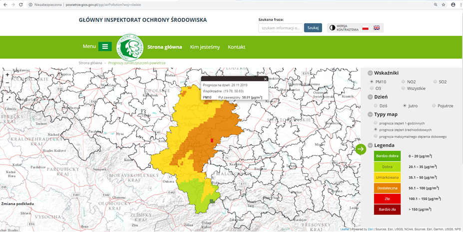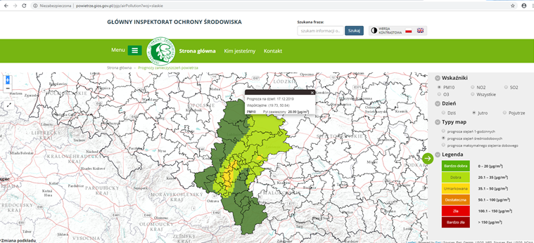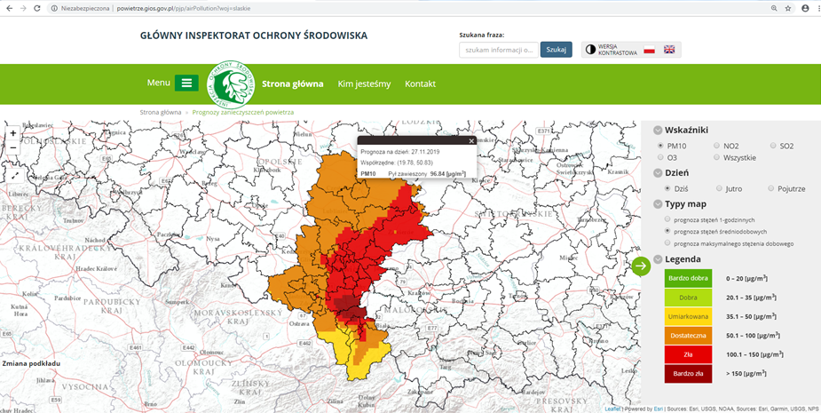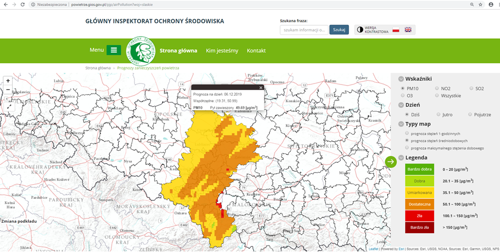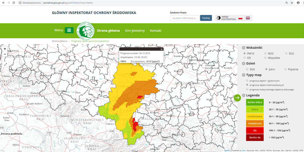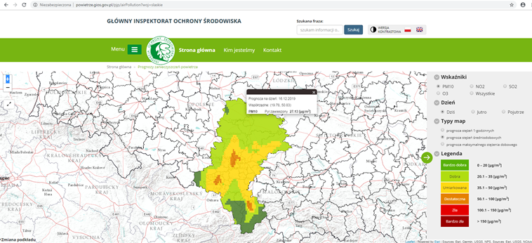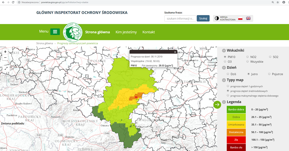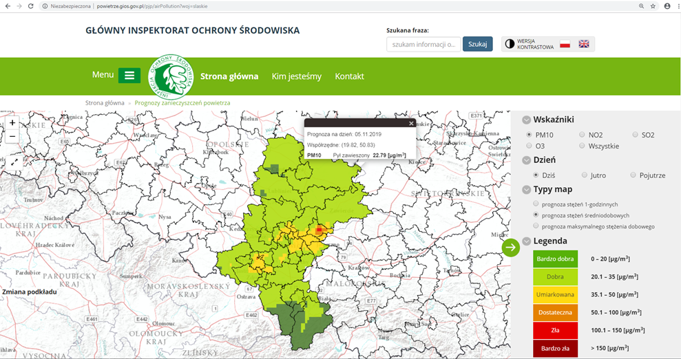 ·      Instytut Ochrony Środowiska – Państwowy Instytut Badawczy (IOŚ-PIB) w Warszawie - prognoza jakości powietrza