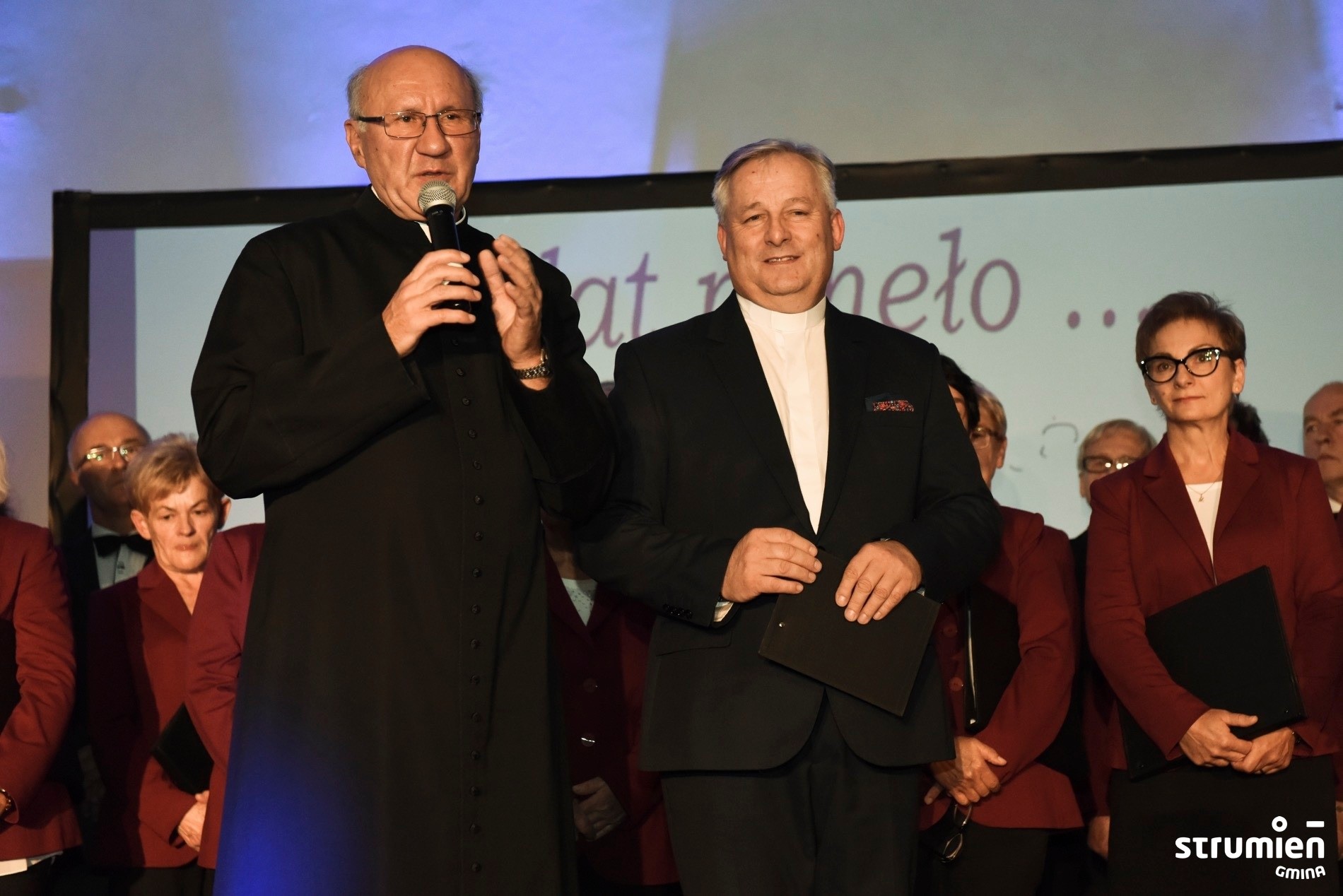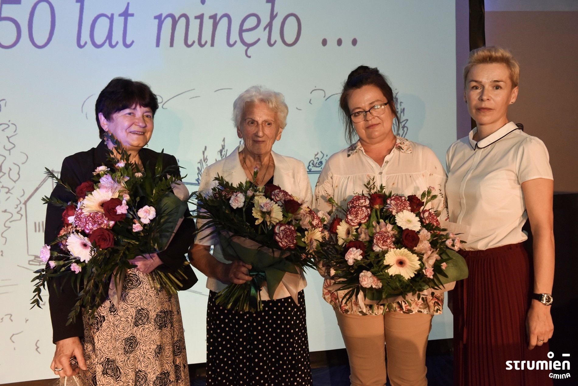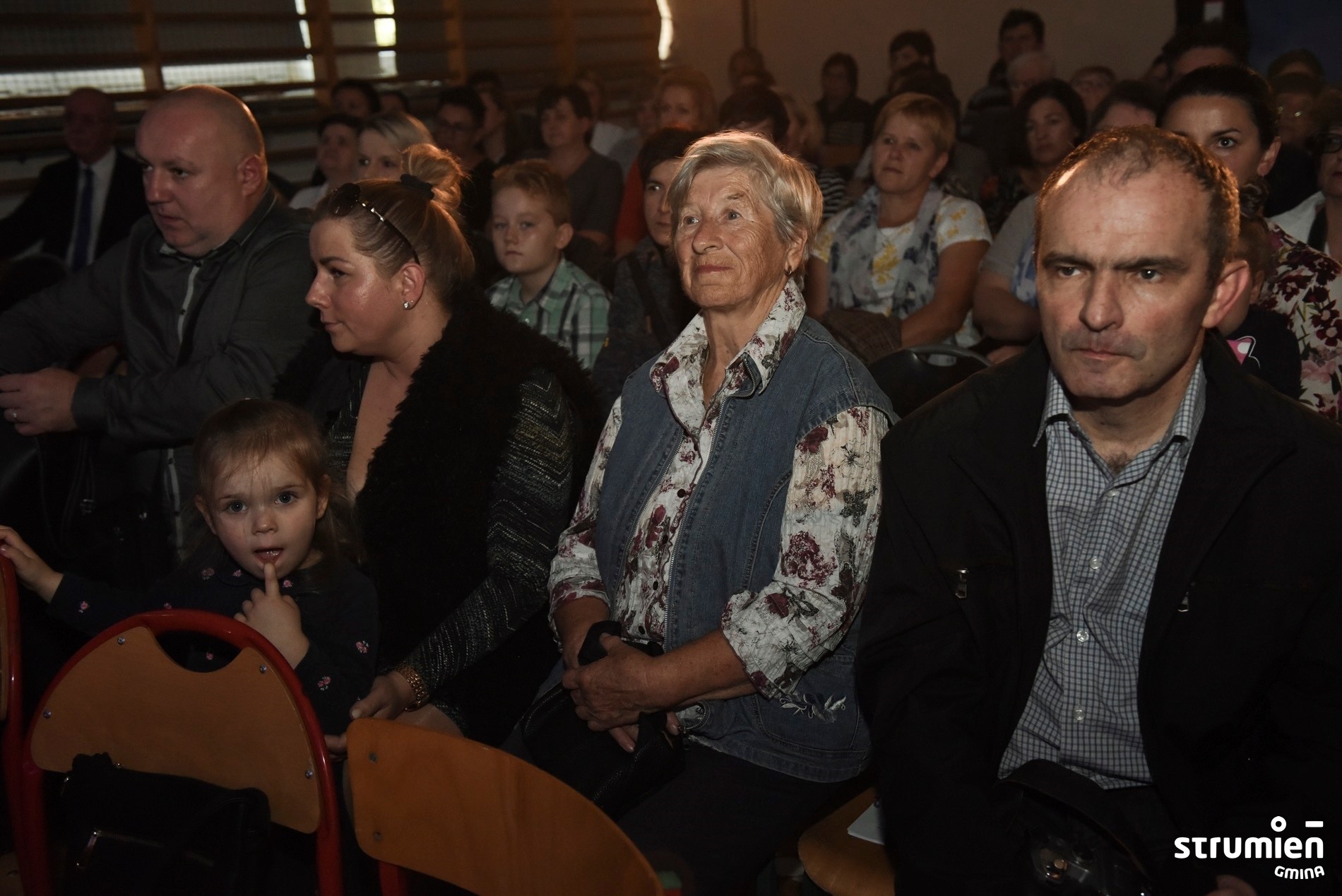 – Jubileusz szkoły to niezwykłe wydarzenie dla całej społeczności gminnej. Jest mi niezwykle miło, że w obecności uczniów, całej kadry pedagogicznej, absolwentów, byłych nauczycieli i pracowników oraz sympatyków szkoły, wspólnie możemy świętować i wspominać. Miniony czas to czas wyzwań, ale i radości z osiągnięć uczniów. Każdym kolejnym rocznikom wpajali Państwo i nadal wpajają wiarę w siebie, wytrwałość w realizacji podjętych celów i marzeń, by pamiętali, że uczą się dla samych siebie. Szkoła, bez wątpienia jest centrum kulturalnym wsi. Jestem dumna z tego, że tak aktywna placówka działa właśnie w gminie Strumień. – mówiła Burmistrz Strumienia Anna Grygierek