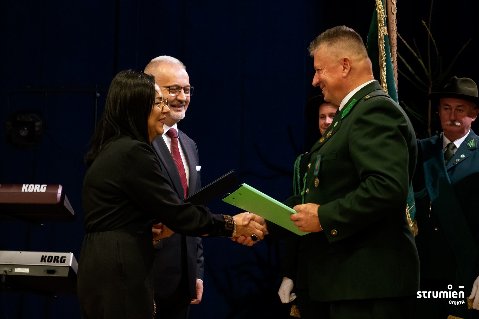 Burmistrz Strumienia Anna Grygierek oraz Przewodniczący Rady Miejskiej Czesław Greń przekazali specjalne wyrazy uznania dla Prezesa Damiana Brzozy, zarządu i wszystkich członków koła za ich wkład w działalność na rzecz lokalnej społeczności oraz ochrony przyrody, życząc dalszych sukcesów i pomyślności.