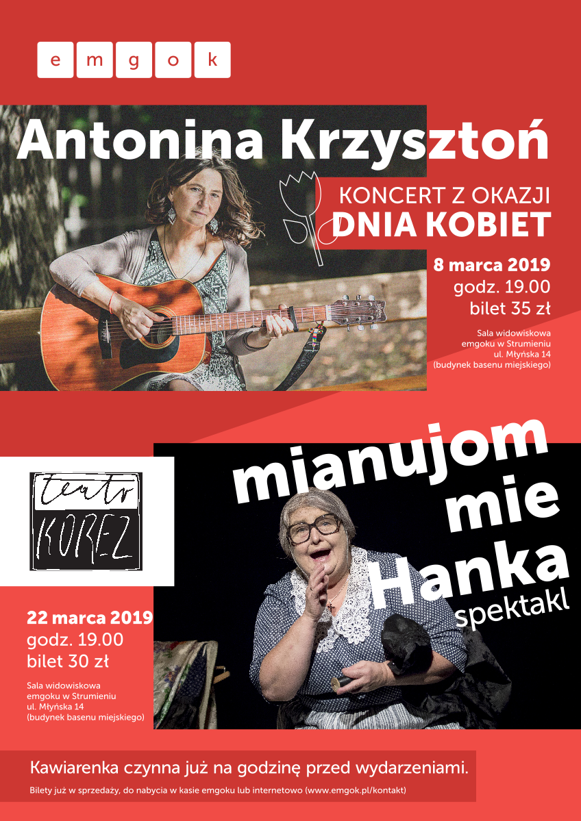Pieśniarka, kompozytorka, autorka tekstów Antonina Krzysztoń wystąpi na sali widowiskowej Miejsko-Gminnego Ośrodka Kultury w Strumieniu 8 marca z okazji Dnia Kobiet.