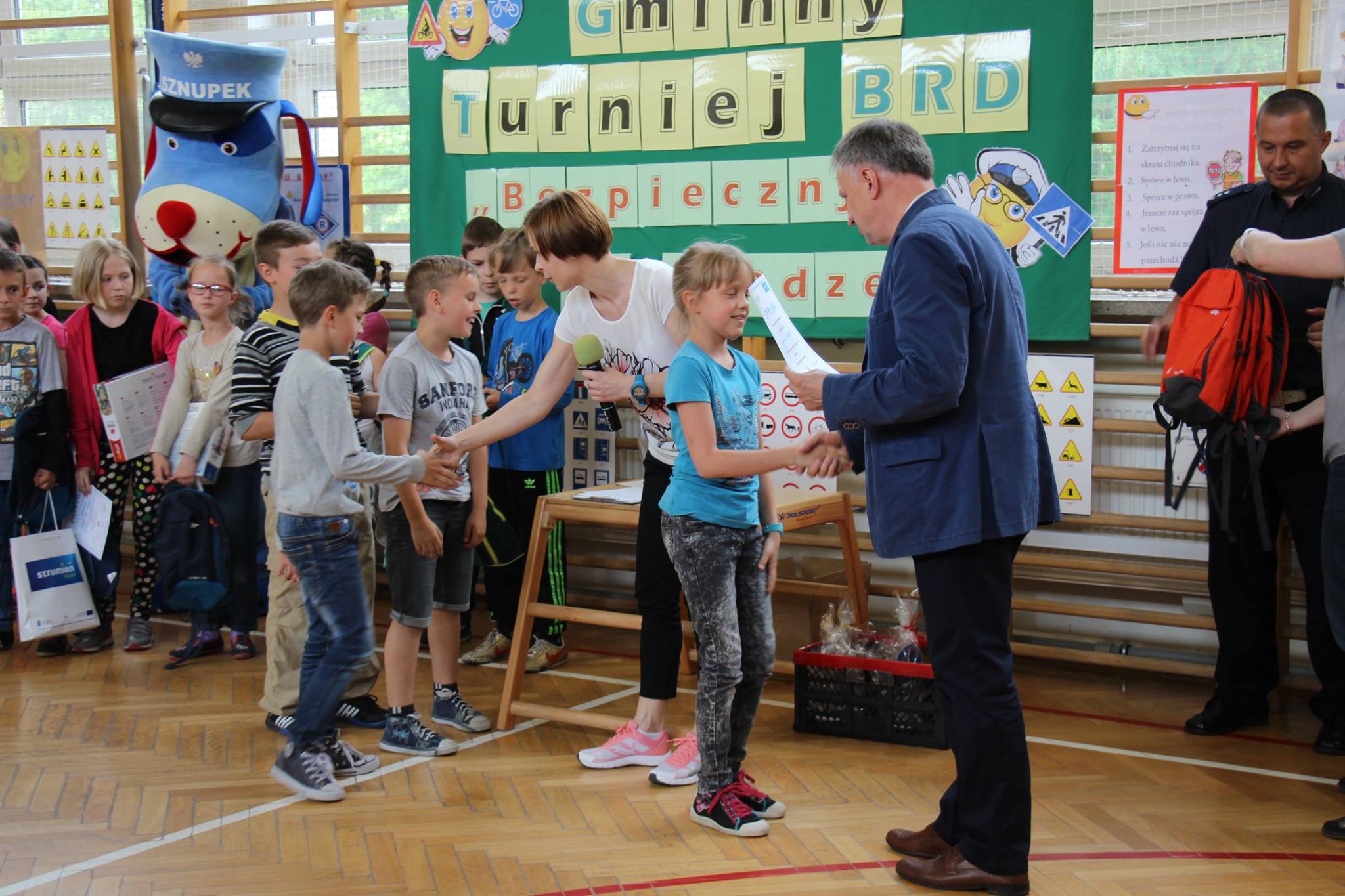 Tegoroczny turniej skierowany był do klas III Szkoły Podstawowej. Każdą ze szkół reprezentowała 4-osobowa grupa uczniów. Wszyscy uczestnicy zmierzyli się z testem ze znajomości przepisów ruchu drogowego, następnie każda z drużyn miała do wykonania makietę „Ratujemy, uczymy ratować”, by wreszcie stawić czoła nie lada wyzwaniu jakim jest jazda sprawnościowa po torze przeszkód. Oprócz zadań konkursowych na uczestników Turnieju czekały atrakcje przygotowane przez organizatorów: spotkanie ze Sznupkiem – maskotką Policji, zwiedzanie policyjnego radiowozu, jazda na rowerach po Miasteczku Ruchu Drogowego oraz prelekcje.
