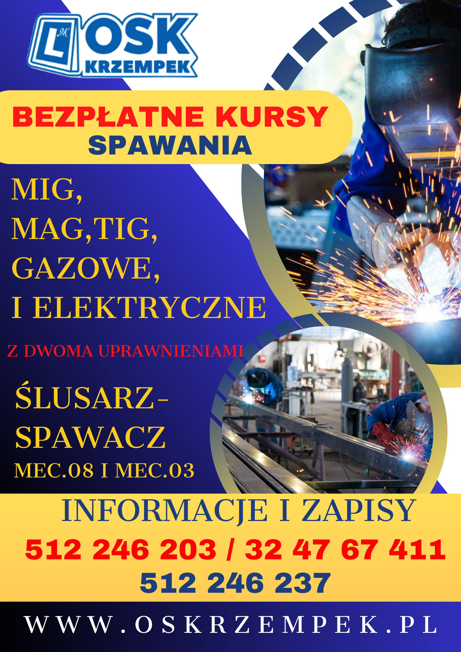 Urząd Miejski w Strumieniu wraz z OSK Krzempek zapraszają na kolejną edycję darmowego projektu na kursy spawalnicze oraz kursy obsługi maszyn budowlanych!