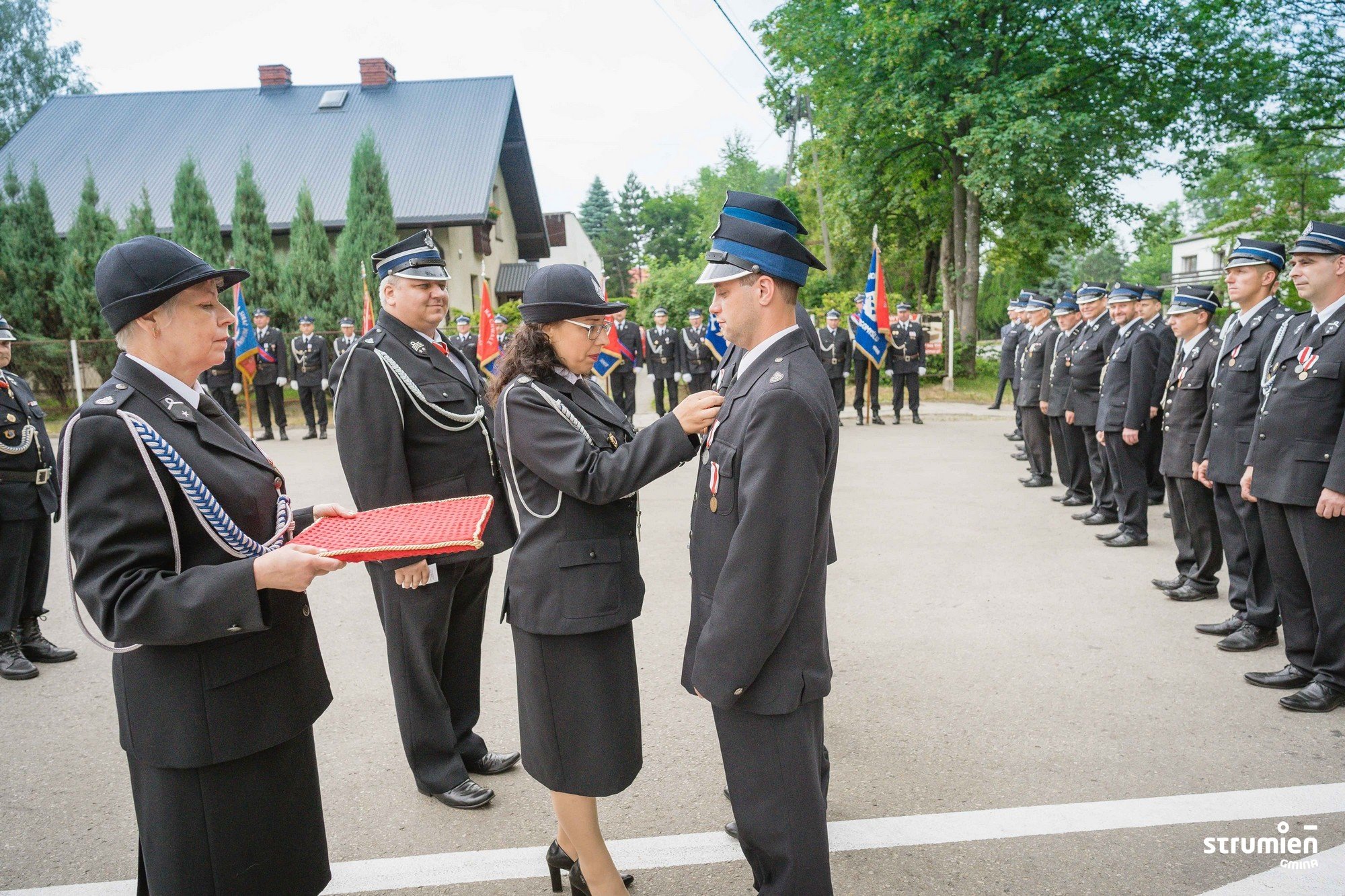 Z miejscowymi ochotnikami świętowali mieszkańcy, zaproszeni goście, delegacje OSP. W ceremonii uczestniczyli m. in. Wiceminister Rodziny i Polityki Społecznej Stanisław Szwed, Przewodniczący Sejmiku Województwa Śląskiego Jan Kawulok, Zastępca Śląskiego Komendanta Wojewódzkiego Państwowej Straży Pożarnej, a zarazem koordynatora ds. współpracy Państwowej Straży Pożarnej i Ochotniczych Straży Pożarnych, st. bryg. Rafał Świerczek, Burmistrz Strumienia Anna Grygierek, Przewodniczący Rady Miejskiej Czesław Greń, przedstawiciele Starostwa Powiatowego w Cieszynie, radni, sołtysi, Zastępca Komendanta Powiatowego Państwowej Straży Pożarnej w Cieszynie bryg. Ryszard Kukuczka, druh Krzysztof Czakon, Wiceprezes Zarządu Oddziału Powiatowego Związku OSP RP w Cieszynie, druh Marek Omozik, Wiceprezes Zarządu Oddziału Powiatowego Związku OSP RP w Cieszynie.