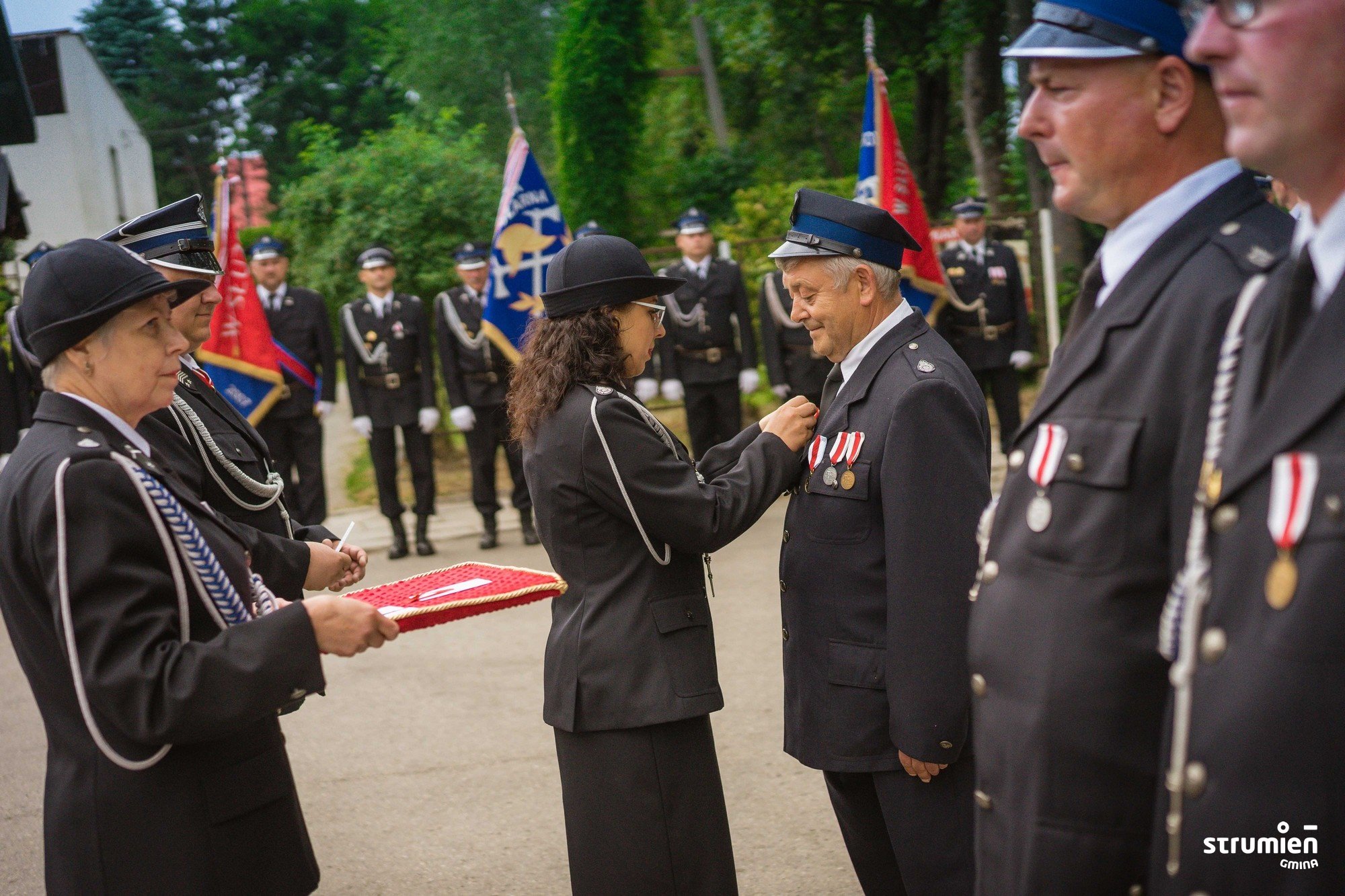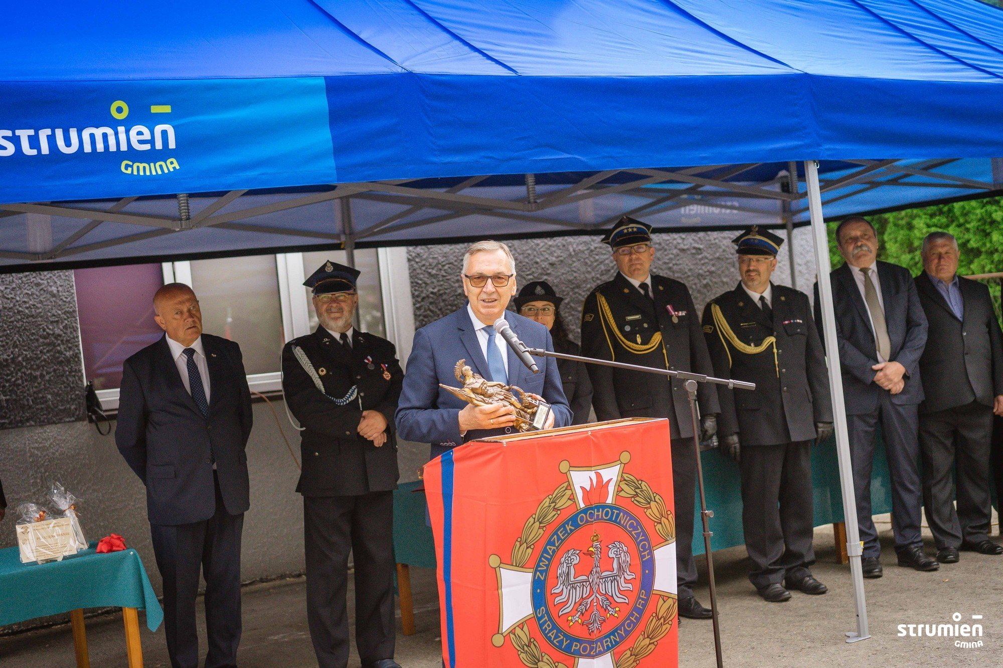 Dzień jubileuszu akcentuje potrzebę ogromnego szacunku oraz wdzięczności dla tych, którzy tworzyli historię jednostki i tych, którzy obecnie kontynuują ich dzieło. W tym uroczystym dniu dziękujemy Wam Szanowni Strażacy – Ochotnicy za tą codzienną służbę na rzecz bezpieczeństwa. Zmieniają się czasy i ludzie, ale co ważne niezmienne pozostają: strażacki zapał, gotowość i strażackie gorące serca – mówiła Burmistrz Strumienia Anna Grygierek.