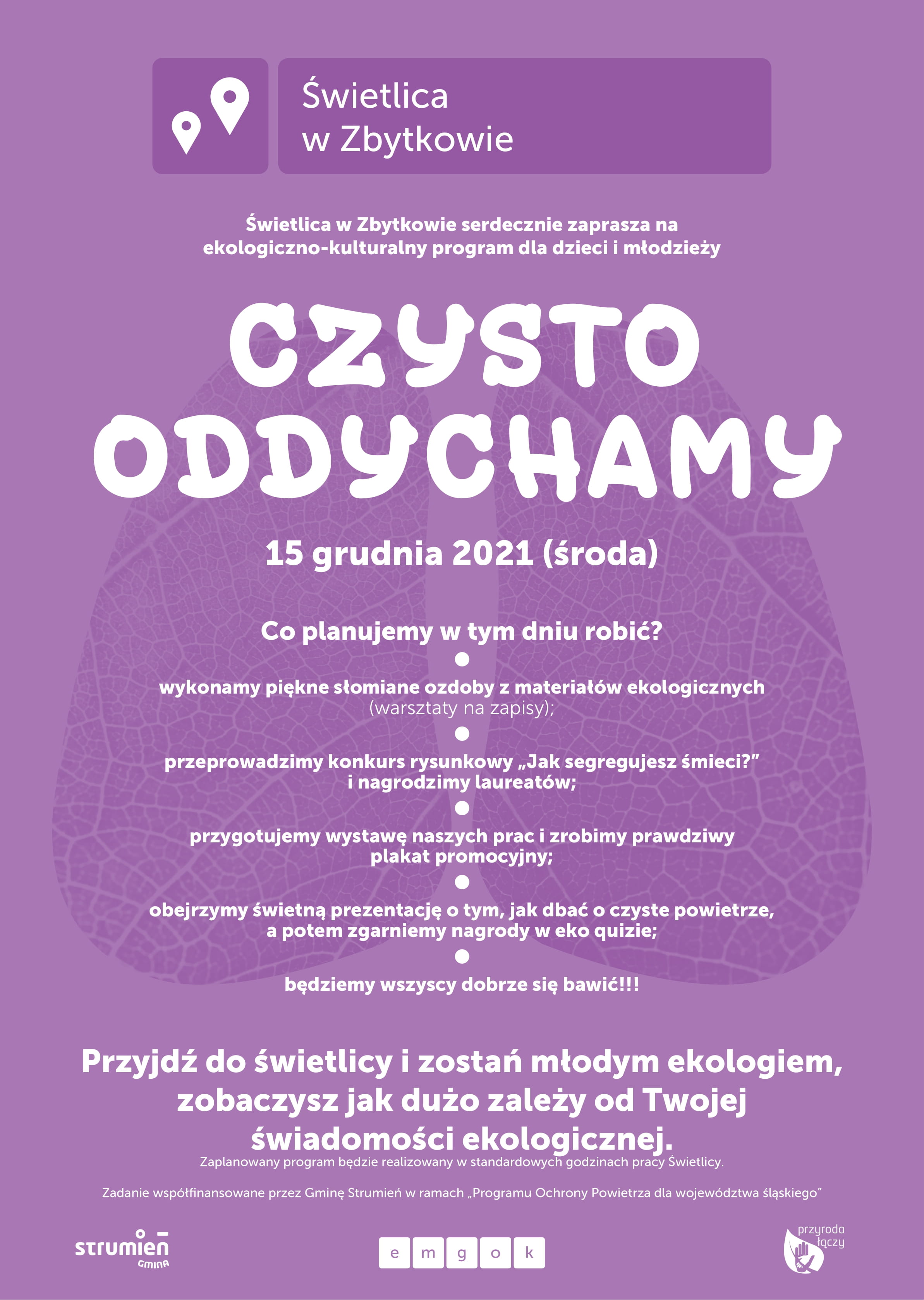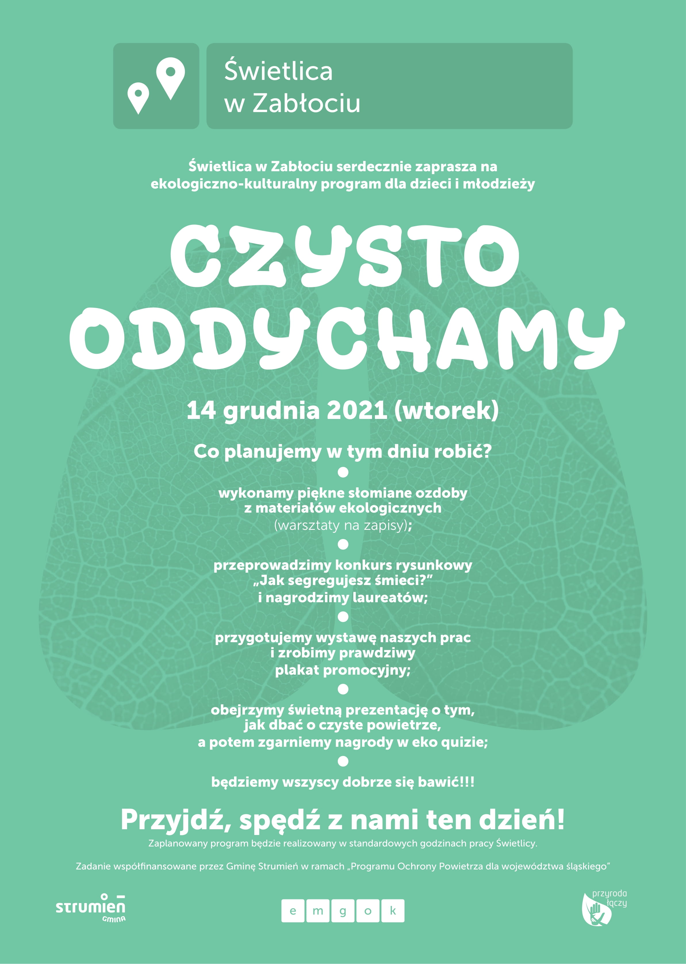 Serdecznie zapraszamy dzieci i młodzież do udziału w ekologiczno-kulturalnej akcji CZYSTO ODDYCHAMY.