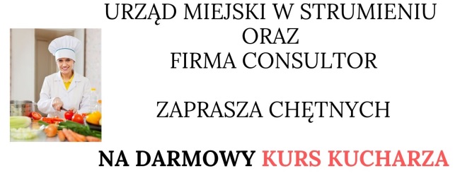 Urząd Miejski w Strumieniu oraz firma CONSULTOR zapraszają chętnych na darmowy kurs KUCHARZA.