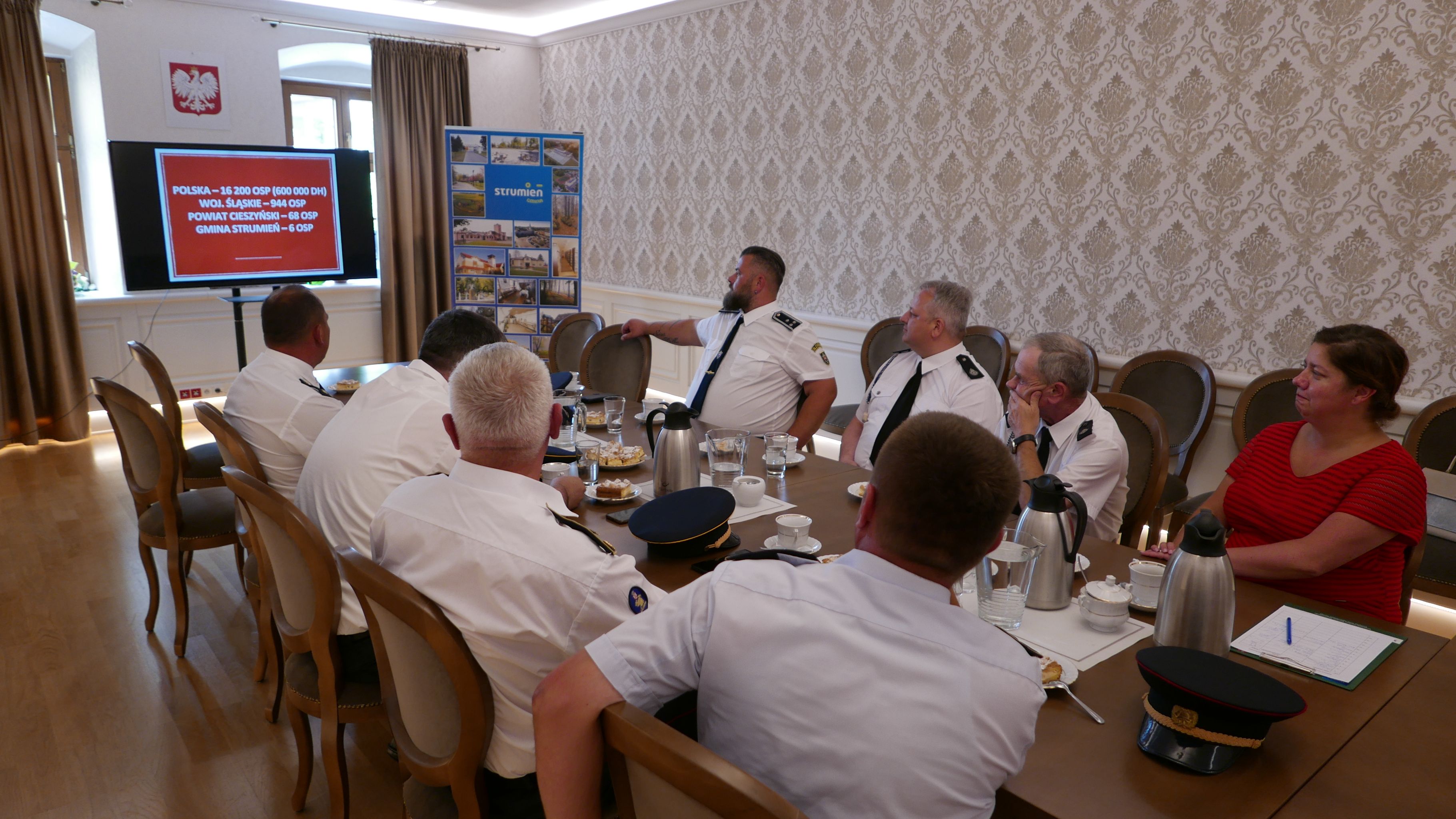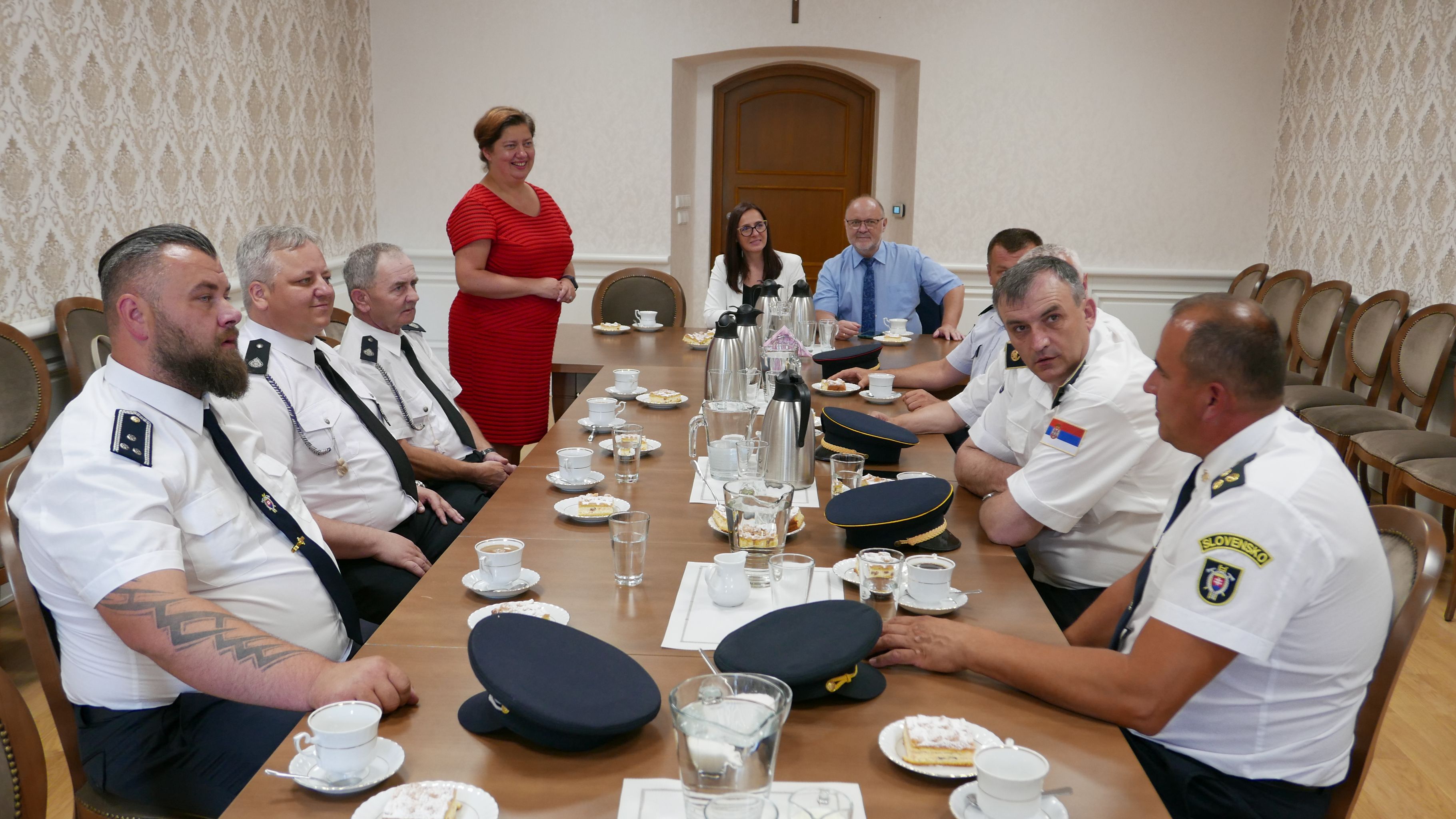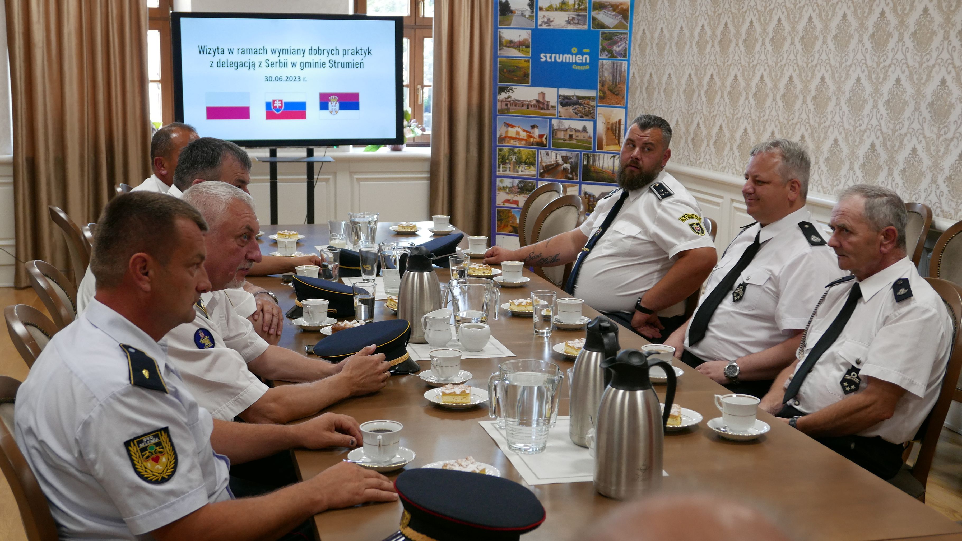 Delegacji z Serbii i Słowacji podczas całego pobytu towarzyszyli: Przewodniczący Rady Miejskiej Czesław Greń, Prezes Oddziału Zarządu Miejsko Gminnego Związku OSP RP w Strumieniu Marek Omozik oraz Komendant Miejsko Gminny Związku OSP RP w Strumieniu Ireneusz Nowak. W ratuszu gości powitała Zastępca Burmistrza Magdalena Suchanek – Kowalska.