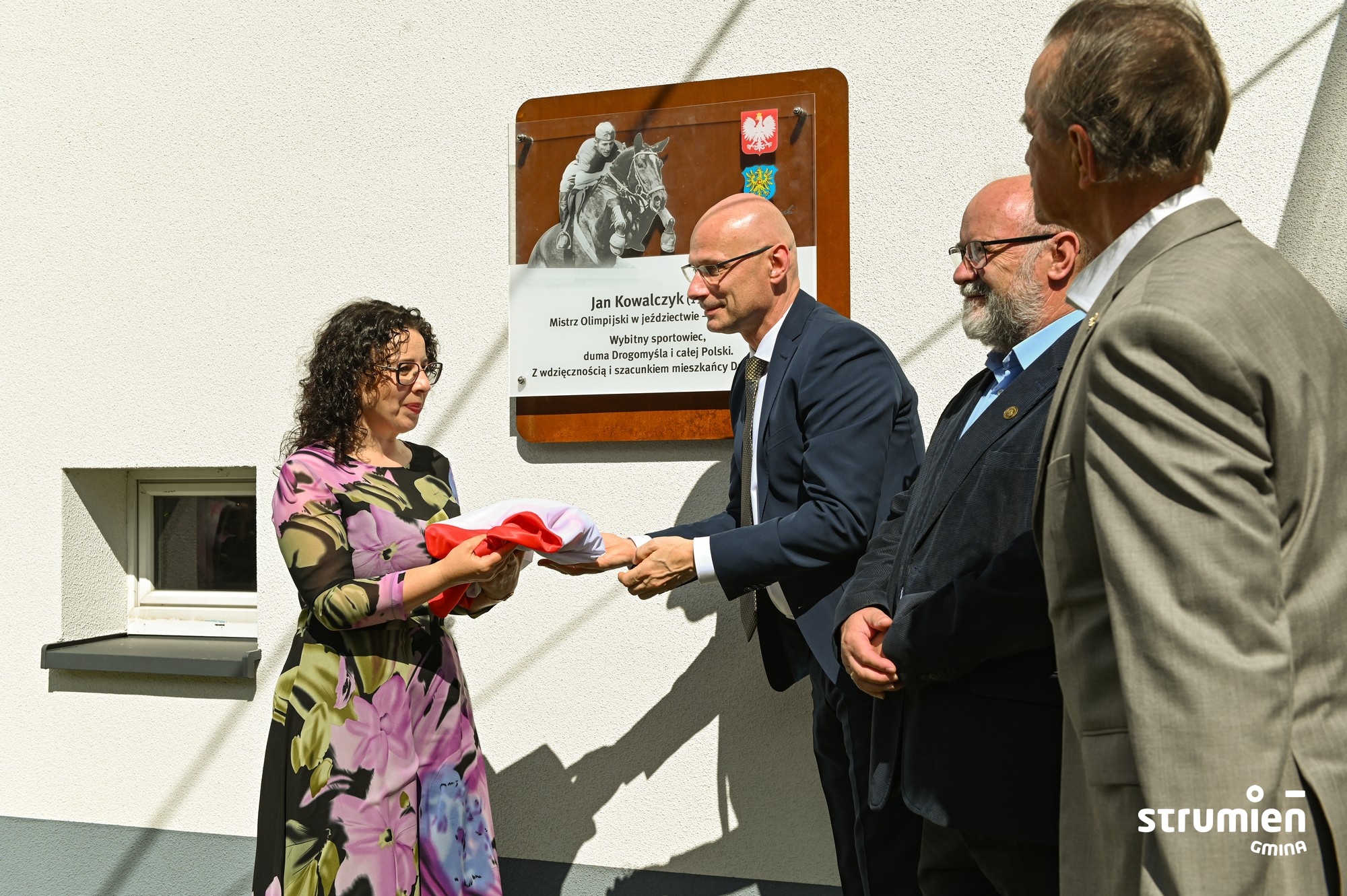 Oficjalnego odsłonięcia tablicy dokonali przedstawiciele rodziny Jana Kowalczyka, Burmistrz Strumienia Anna Grygierek oraz Przewodniczący Rady Miejskiej Czesław Greń.