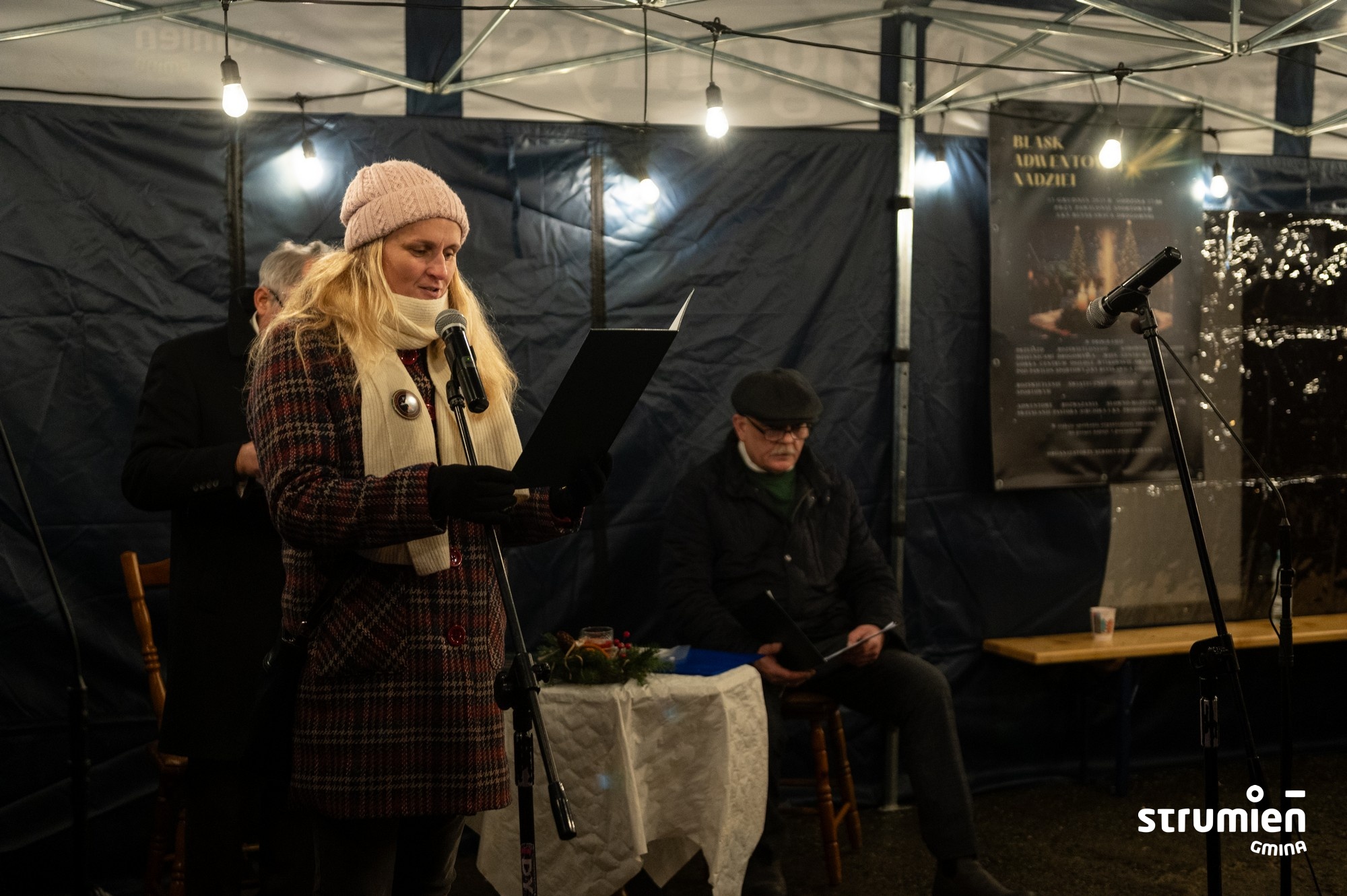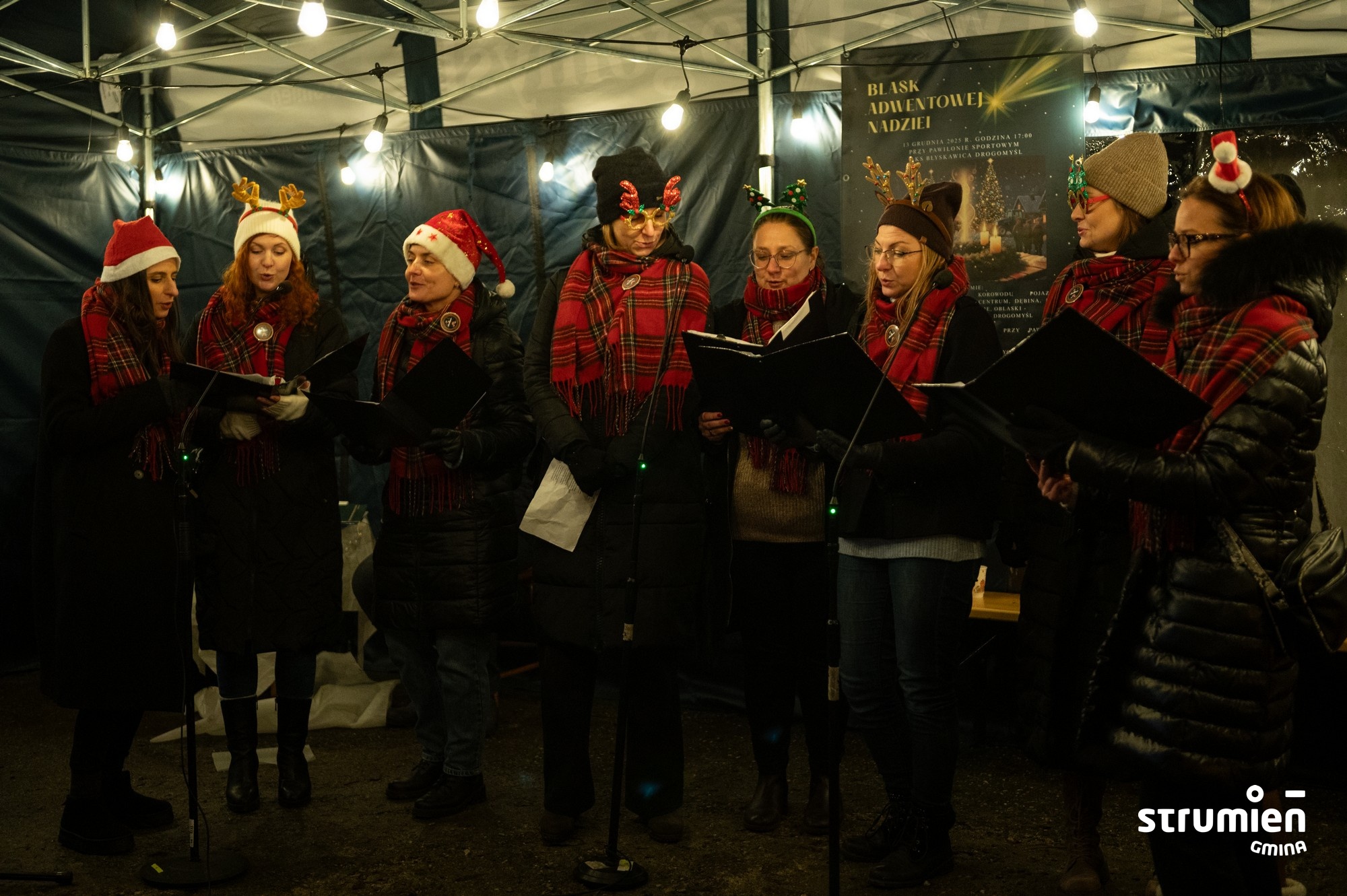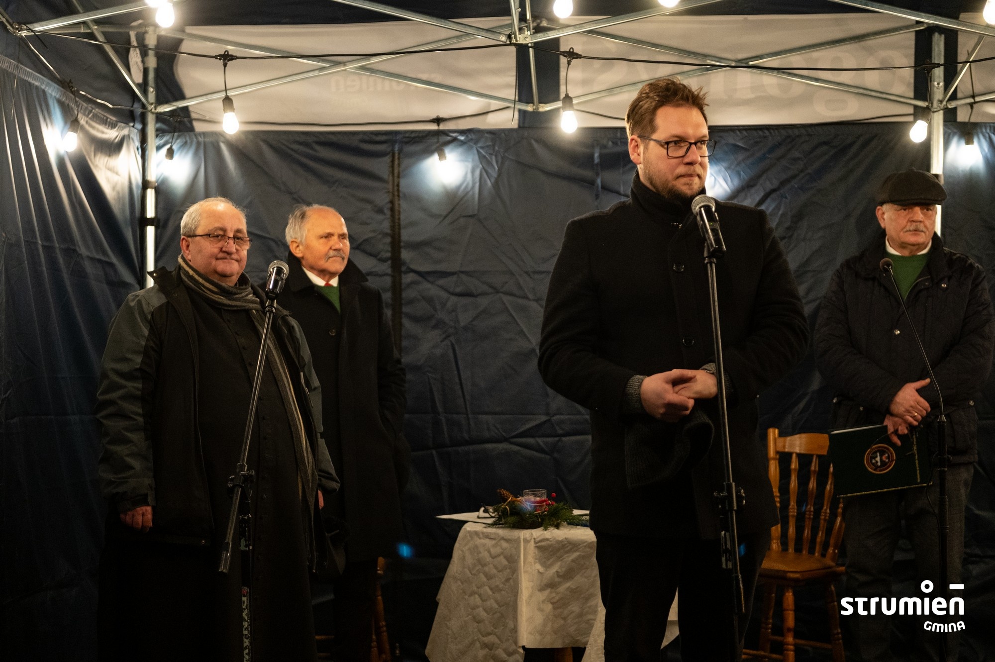 Finał wydarzenia przy Pawilonie Sportowym LKS Błyskawica Drogomyśl był wyjątkowy - wspólnie kolędowaliśmy z Chórem Żeńskim Voce Viva, rozświetliliśmy świąteczną choinkę, a Adwentowe Rozważania Słowno-Muzyczne, w tym słowa pastora Adama Bujoka i ks. proboszcza Jacka Wójcika, wprowadziły wszystkich w refleksyjny nastrój. Nie zabrakło również pysznego poczęstunku i gorących napojów. W wydarzeniu uczestniczyła Burmistrz Strumienia Anna Grygierek, Przewodniczący Rady Miejskiej Czesław Greń oraz Sołtys Drogomyśla Zbigniew Podyma, dzieląc wraz z mieszkańcami radość z tej pięknej inicjatywy.