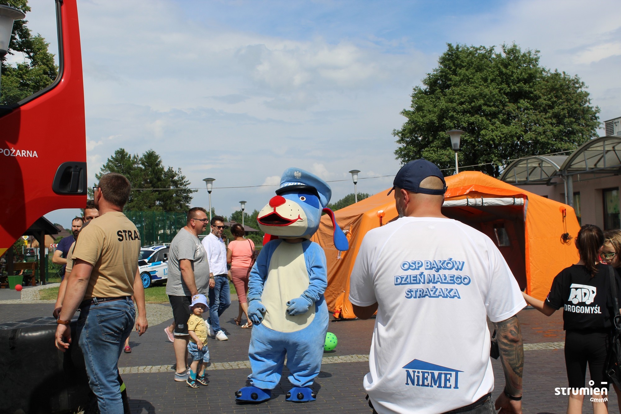 Rodzinne wydarzenie plenerowe zorganizowali druhowie z OSP Bąków. Partnerami akcji byli: Gmina Strumień, Rada Sołecka, Państwowa Straż Pożarna, Policja, Związek Harcerstwa Polskiego, Forum Instruktorów Ratownictwo i Edukacja Drużyn Pożarniczych.