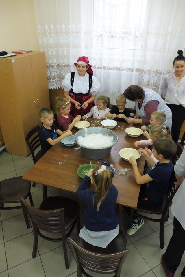 Aktywne Panie już od samego rana przekazywały swoją pozytywną energię. Program dopołudniowy obfitował w atrakcje dla dzieci. W warsztatach z darcia pierza, łuskania fasoli, działania masła, pieczenia pączków itp. wzięły udział zbytkowskie przedszkolaki oraz podopieczni DPS w Strumieniu.
