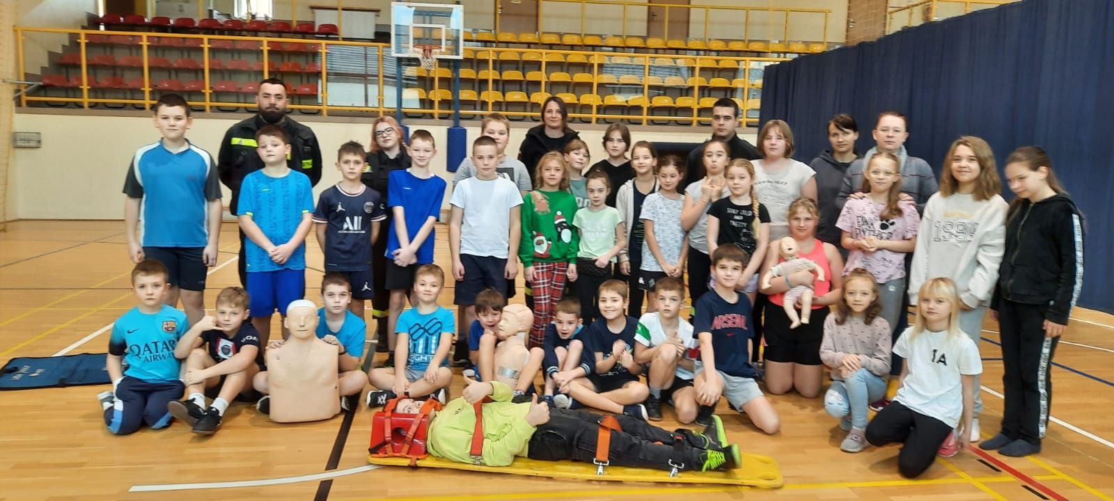 Zajęcia rozpoczęto od omówienia zasad bhp w hali, w szkole i w czasie wyjazdów, następnie odbyło się szkolenie z pierwszej pomocy przedmedycznej.