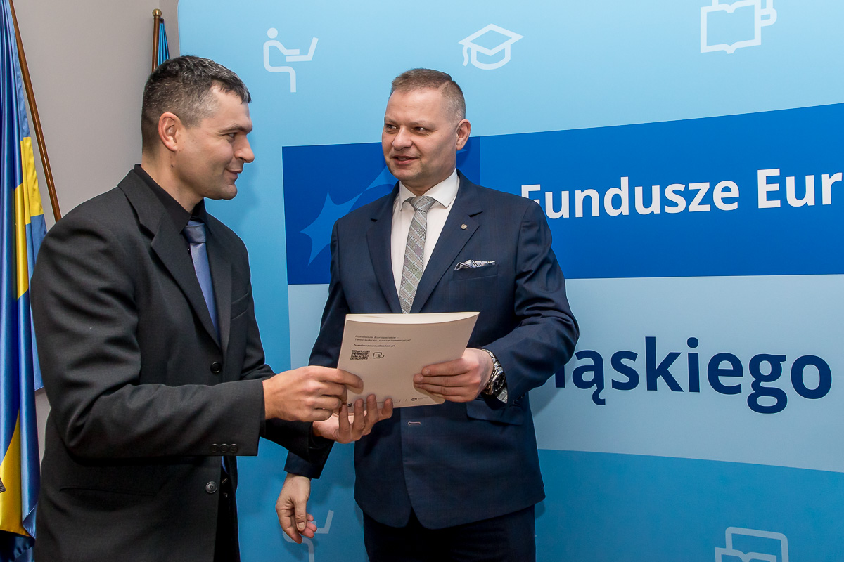W dniu wczorajszym list gratulacyjny w sprawie projektu odebrał z rąk członka zarządu Województwa Śląskiego Rafała Adamczyka oraz dyrektora Wojewódzkiego Urzędu Pracy w Katowicach Grzegorza Sikorskiego, kierownik MOPS w Strumieniu Konrad Kroczek.