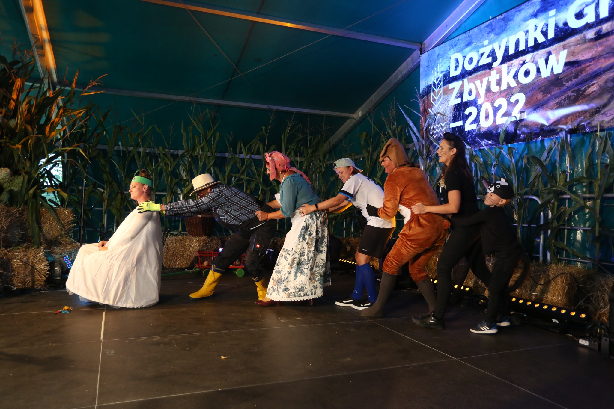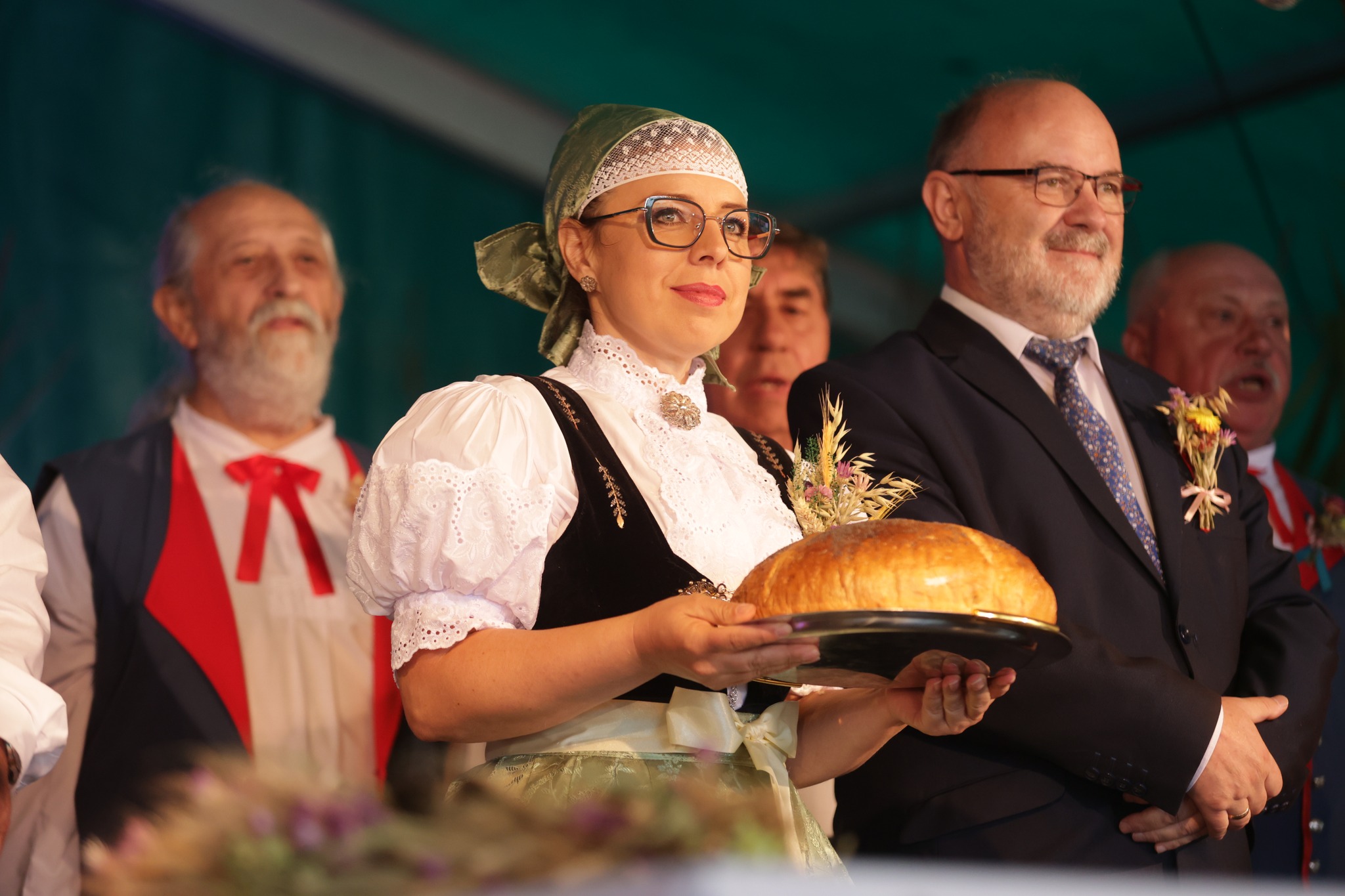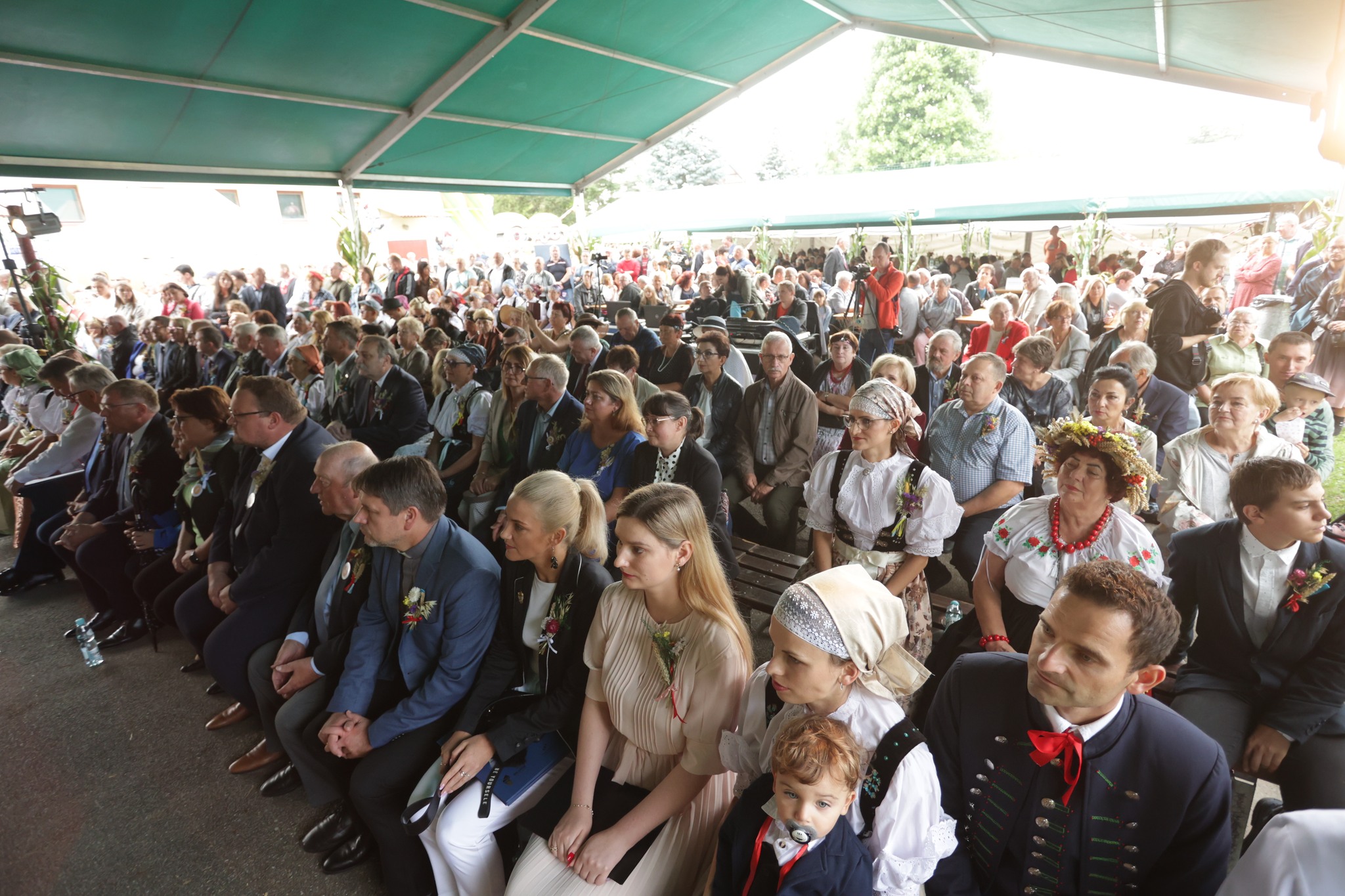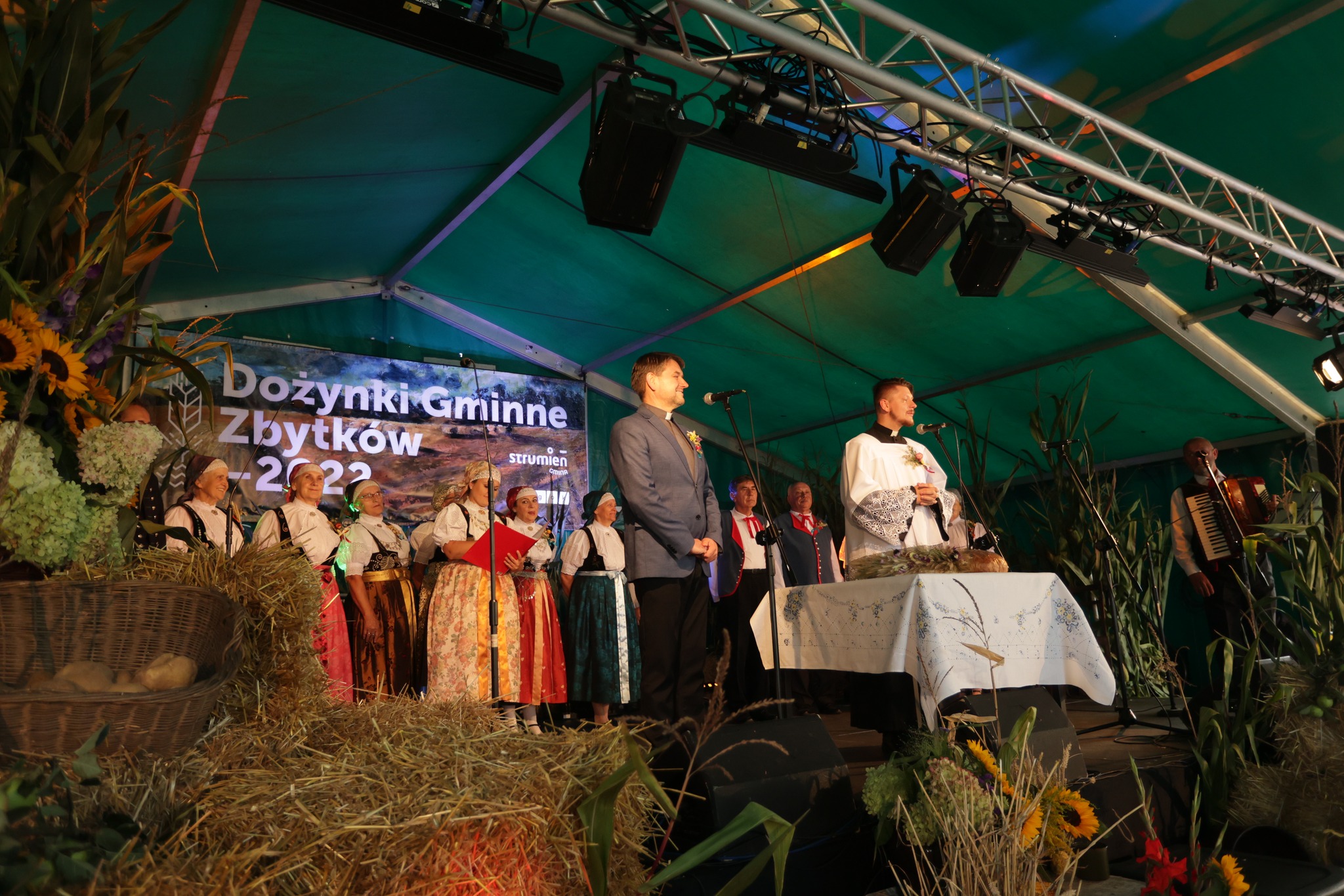 Obrzęd dożynkowy otwierający wydarzenie, zaprezentował Zespół Regionalny Strumień.  Głos zabrali gazdowie tegorocznych dożynek, Państwo Kuś, a także obecni goście Stanisław Szwed - Wiceminister Rodziny i Polityki Społecznej, Małgorzata Pępek - Poseł na Sejm RP i przebywający w gminie Strumień z delegacją, burmistrz zaprzyjaźnionego, niemieckiego miasta Igensdorf, Edmund Ulm.  Życzenia wszystkim gospodarzom i rolnikom z okazji święta plonów złożyli Burmistrz Strumienia Anna Grygierek, Przewodniczący Rady Miejskiej Czesław Greń i Sołtys Zbytkowa Bogusław Wawrzyczek.
