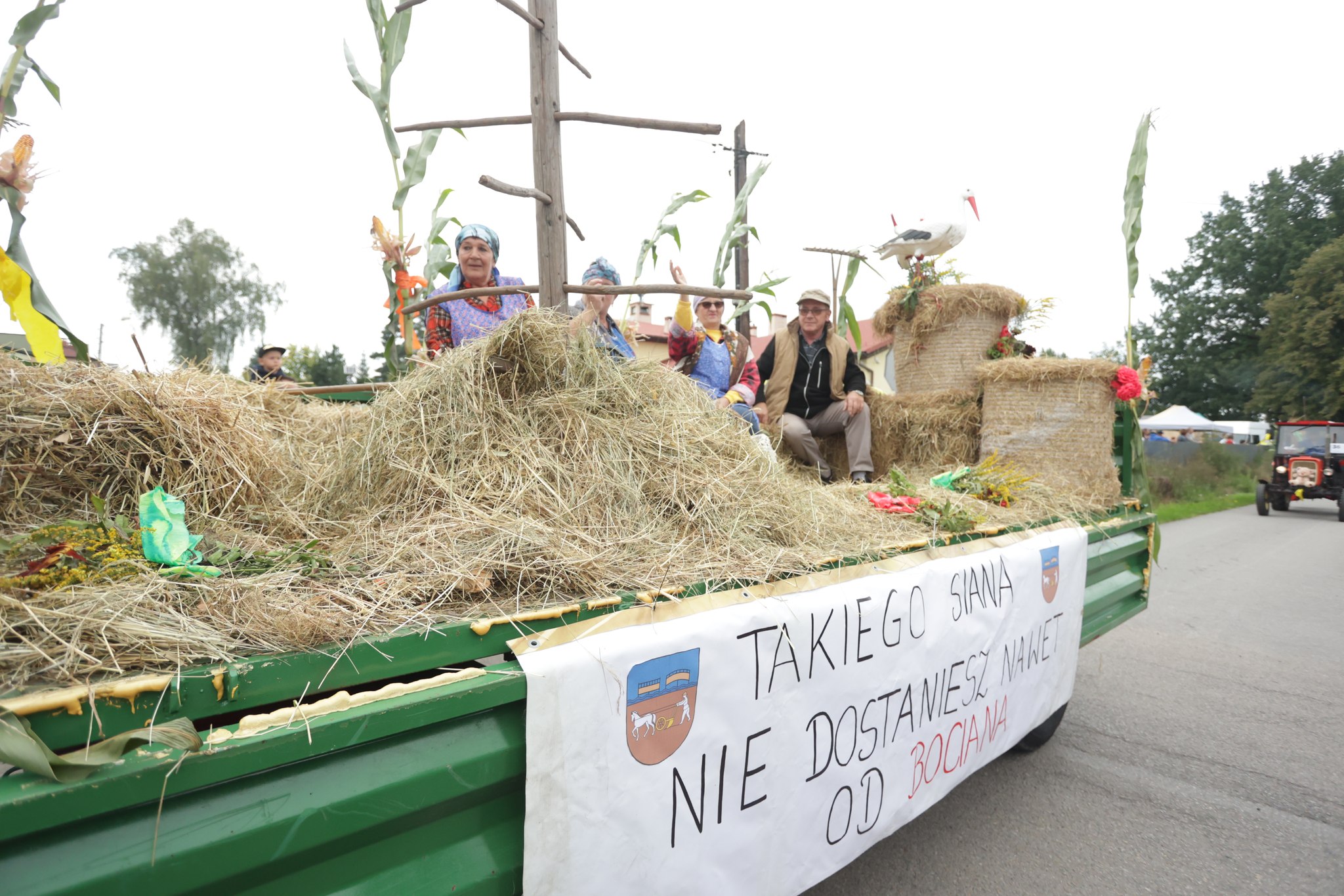 Wydarzenie rozpoczęło się tradycyjnym korowodem dożynkowym, w którym w tym roku wzięły udział przede wszystkim zabytkowe maszyny rolnicze, pięknie ozdobione i wiozące mieszkańców poszczególnych sołectw gminy.