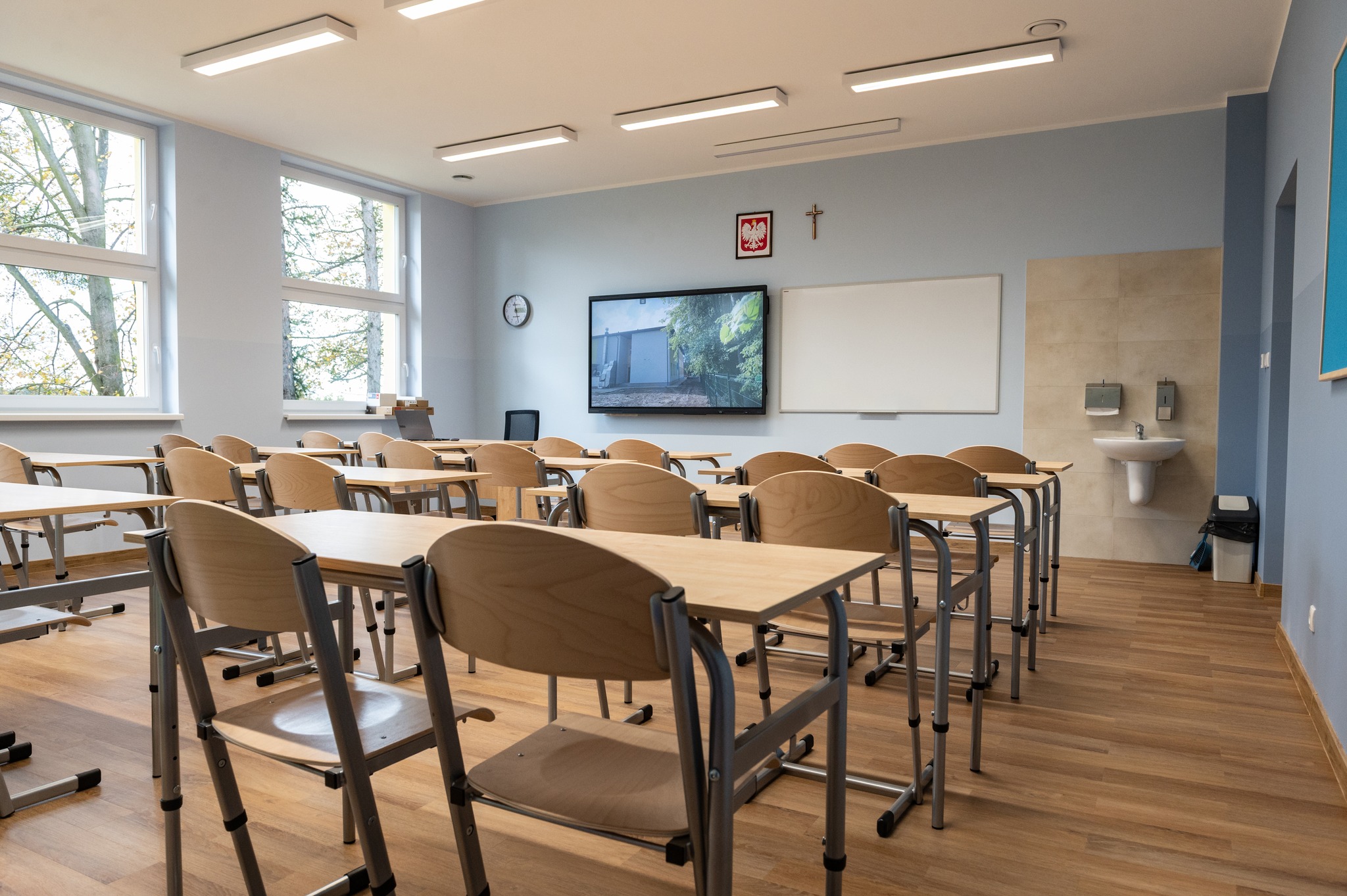 Nowoczesny, dwukondygnacyjny budynek został połączony z dotychczasową szkołą przeszklonym łącznikiem. W nowym obiekcie znalazło się sześć przestronnych sal lekcyjnych, stołówka z zapleczem kuchennym, winda oraz wiele ekologicznych rozwiązań. Całość tworzy komfortową i funkcjonalną przestrzeń do nauki, pracy i rozwoju dla uczniów oraz nauczycieli.