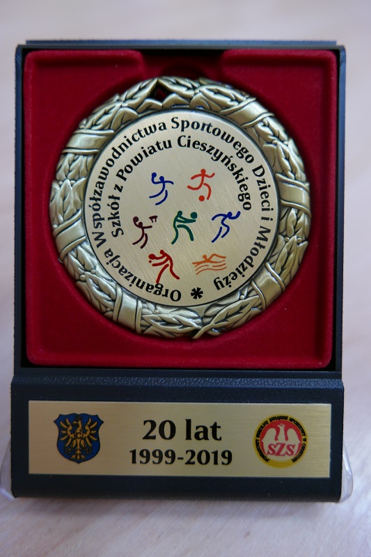 3 października br. jubileuszowe medale i odznaki z okazji obchodów 20 - lecia organizacji współzawodnictwa sportowego dzieci i młodzieży powiatu cieszyńskiego z rąk Wicestarosty Powiatu Cieszyńskiego Janiny Żagan i Przewodniczącego Powiatowego Szkolnego Związku Sportowego w Cieszynie Tadeusza Glosa otrzymali organizatorzy współzawodnictwa sportowego w tym Pani Janusza Krzyżanowska – Zastępca Przewodniczącego Powiatowego SZS w Cieszynie.