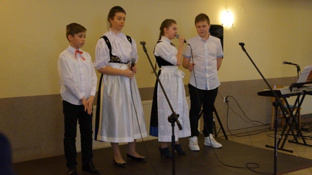 Część oficjalną uroczystości od krótkiego rysu historycznego działalności Koła Gospodyń Wiejskich w Drogomyślu rozpoczęła jego przewodnicząca Anna Orawska. Następnie na ręce przewodniczącej, życzenia wszelkiej pomyślności na dalsze lata działalności Koła złożyli wszyscy goście zaproszeni tego dnia do Drogomyśla. Część artystyczną przygotowała młodzież z Zespołu Szkół w Drogomyślu. Przed zebranymi zaprezentował się również gawędziarz- Pan Tadeusz Rucki z Koniakowa. Na gości czekał także tort i pyszny poczęstunek przygotowany przez Gospodynie.