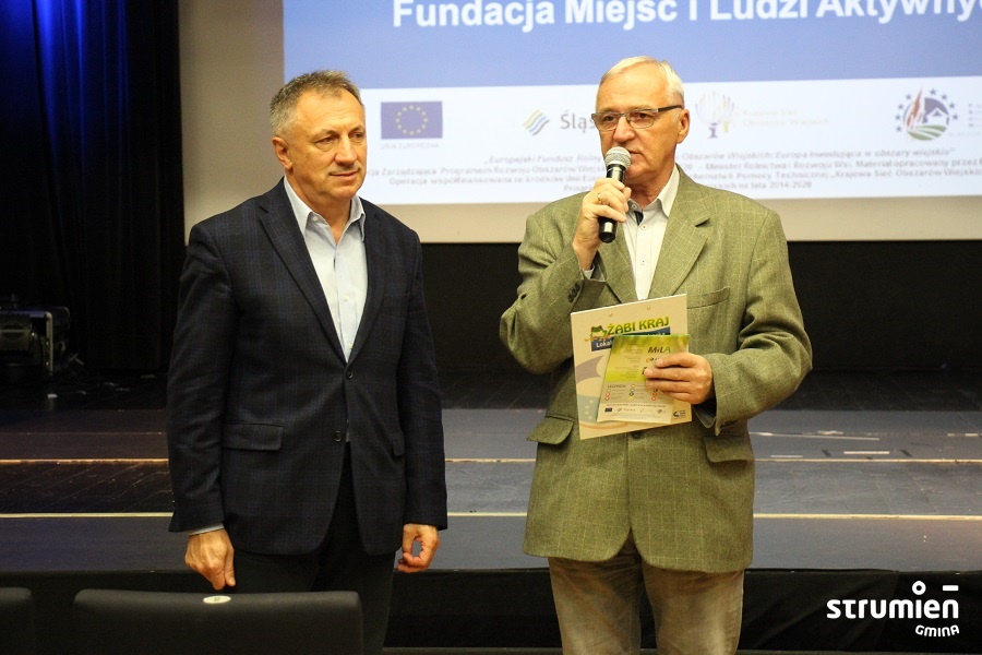Podczas jubileuszowych uroczystości Prezes Zarządu „Żabiego Kraju” Krzysztof Szymura złożył podziękowania na ręce osób najbardziej zaangażowanych w działania Stowarzyszenia. Otrzymali je m.in. Wicestarosta Powiatu Cieszyńskiego Janina Żagan, Burmistrz Strumienia Anna Grygierek, Pan Stanisław Gabzdyl i Pan Piotr Hansel
