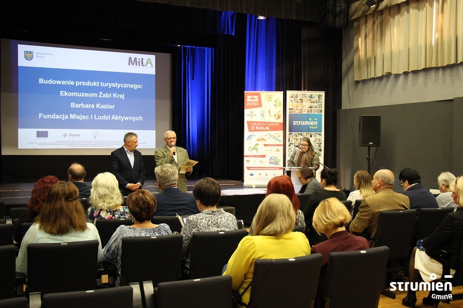 Podczas konferencji Prezes Fundacji Miejsc i Ludzi Aktywnych Barbara Kazior zaprezentowała tematy związane z budowaniem produktu turystycznego – Ekomuzeum Żabi Kraj. O dobrych praktykach Ekomuzeum i marki lokalnej Dolina Karpia mówiła Grażyna Bałys-Diprose, specjalista ds. projektów Stowarzyszenia Dolina Karpia, zaś dobre praktyki w promocji produktów lokalnych i tradycyjnych przedstawiła Barbara Majnusz z ŚODR w Częstochowie Oddział w Mikołowie.
